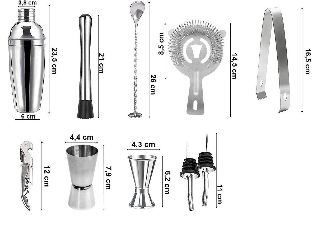 Barkeeper-Set LOGAN 11 Teile mit Box Farbe: Schwarz Veranstalten Sie eine Party und möchten Ihre Gäste überraschen? Das Barkeeper-Set hilft Ihnen, die Stimmung aufzulockern und originelle, interessante Drinks zuzubereiten. Jedes Element des Sets besteht aus hochwertigem Edelstahl, wodurch der Geschmack der Getränke nicht verändert wird. Das Set enthält bis zu 11 Teile: 10 Edelstahlzubehörteile und einen Ständer aus karbonisiertem Kiefernholz. Vorteile hochwertiger Edelstahl 304 Set enthält bis zu 11 Teile verändert den Geschmack der Getränke nicht perfekte Geschenkidee Stahlelemente spülmaschinengeeignet Haken ermöglichen das Aufhängen der Box an der Wand Inhalt des Sets 1x Shaker 550 ml 1x Barkeeper-Stößel (Muddler) 1x lange Barkeeper-Löffel 1x Barkeeper-Sieb 1x Eiszange 1x Korkenzieher/Öffner 1x doppelseitiger Messbecher 30 ml/50 ml (Jigger) 1x doppelseitiger Messbecher 15 ml/30 ml (Jigger) 2x Ausgießer 1x Holzkiste Abmessungen der Box gesamtbreite: 35 cm Wandstärke: 1 cm Boxhöhe: 27 cm Boxtiefe: 10 cm Schnur: 45 cm Marke: Gockowiak Produktcode: 326985MG Farbe: Silber Material Zubehör: Stahl Material Box: Kiefernholz Anzahl der Teile: 11 Weitere Informationen Die dargestellten Farben sind indikativ - sie können aufgrund unterschiedlicher Monitoreinstellungen und des Fotoanpassungsprozesses von den tatsächlichen abweichen. Die tatsächlichen Abmessungen können von den oben angegebenen abweichen. Die Fehlertoleranz kann +/- 5% betragen.