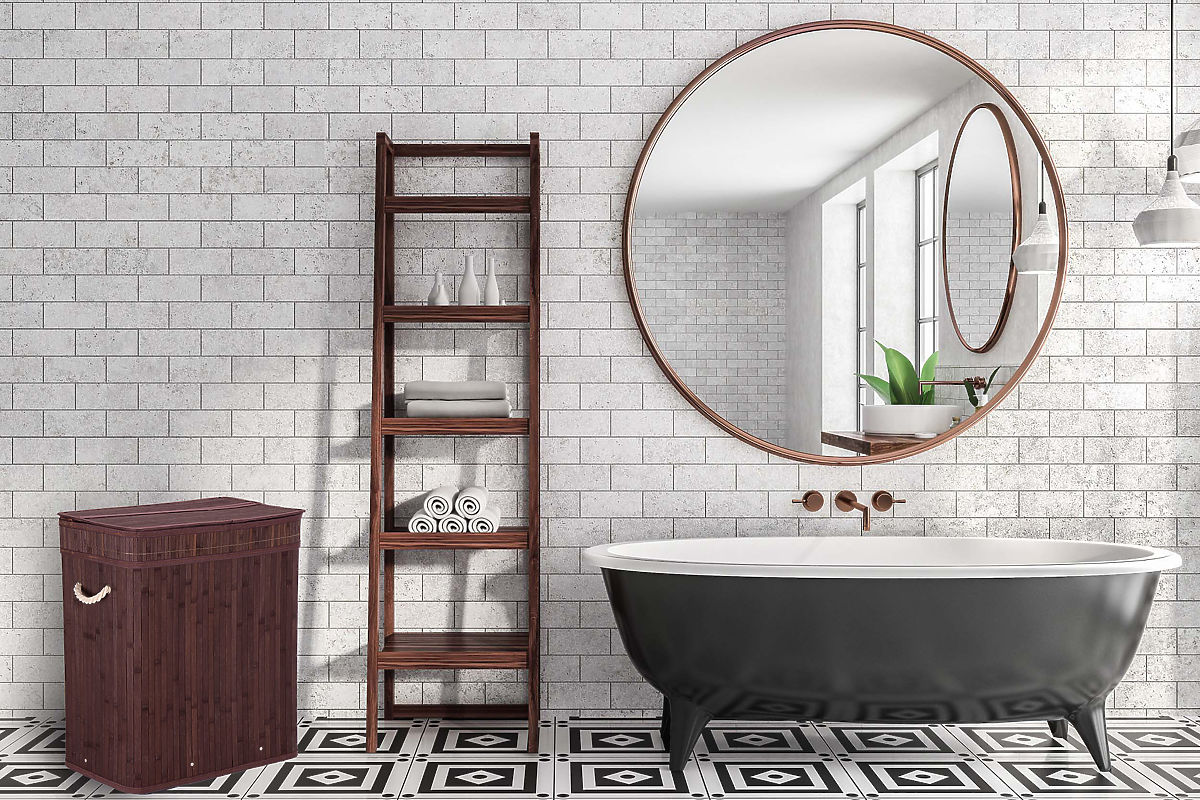Bambus-Wäschekorb mit Deckel 100L Wenge