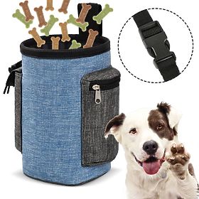 Außergewöhnliche Leckerlitasche für Hunde - hochwertig, wasserabweisend und robust. Ideal für Reisen mit Ihrem Haustier, sorgt für sichere Spaziergänge und Reisen. Große Kapazität, zusätzliche Fächer und Taschen für Kleinigkeiten. Starker Gürtelclip, verstellbarer Hüftgurt. Einfacher Zugriff auf den Inhalt, ohne Risiko des Verschüttens von Futter. Wasserabweisendes Leinen - dadurch ist die Tasche leicht, strapazierfähig und leicht zu reinigen.