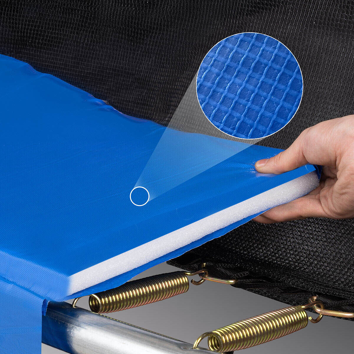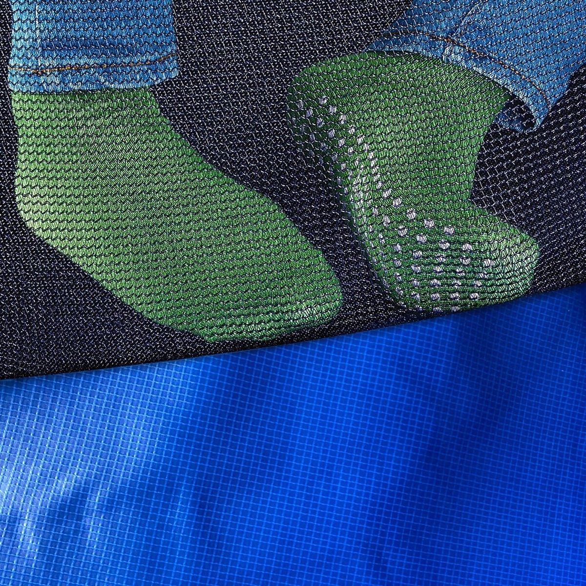 Material der Sprungmatte: PP (Polypropylen) mit einem Gewicht von 275g/m2 - für Komfort und Sicherheit beim Springen.