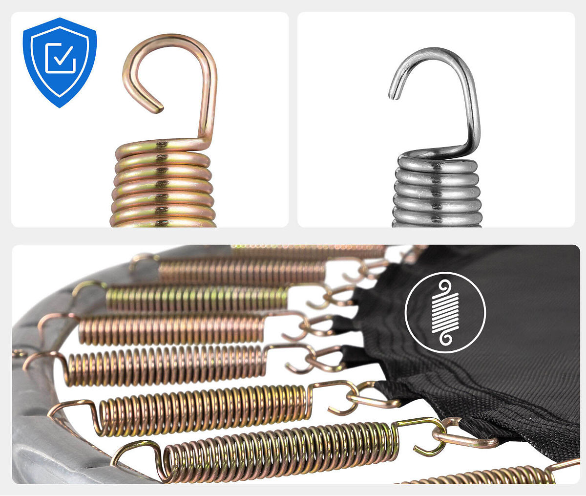 ✔️Gebogene Seitenpfosten - Die Seitenpfosten sind passend gebogen, um sicherzustellen, dass springende Personen nicht versehentlich mit ihnen in Kontakt kommen.