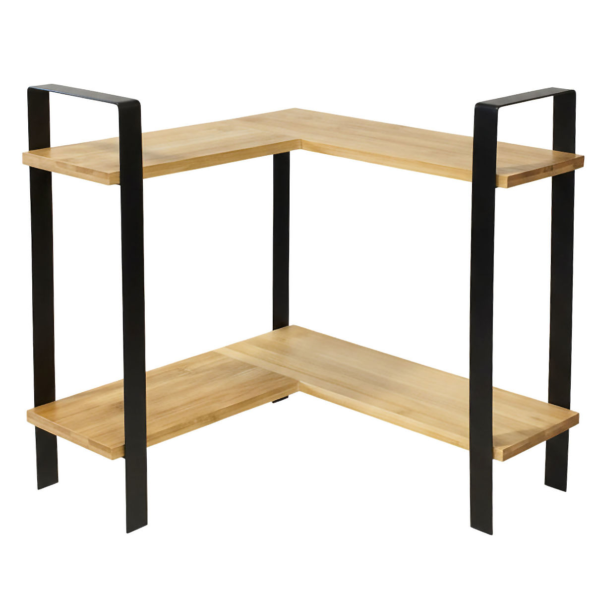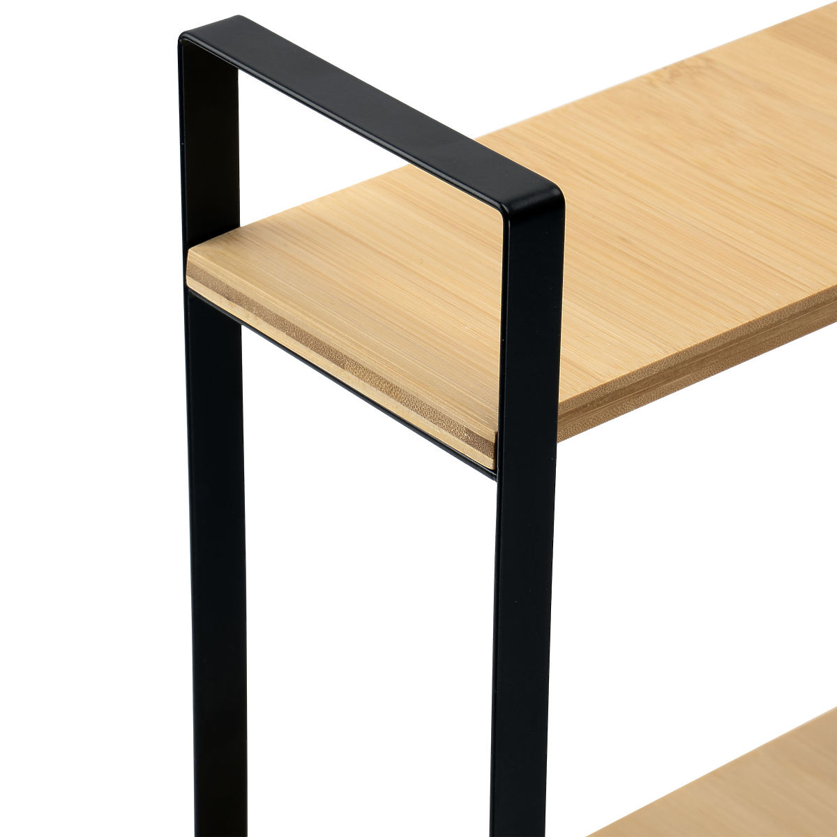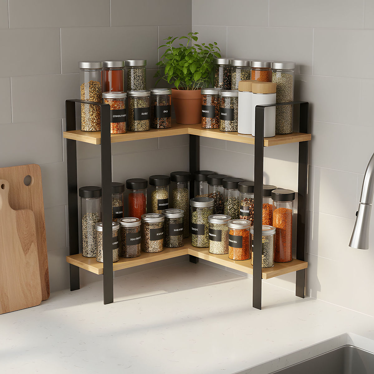 Eckregal aus Bambus und Metall für effiziente Raumnutzung in der Küche. .. mehr