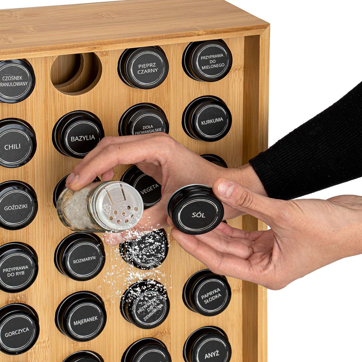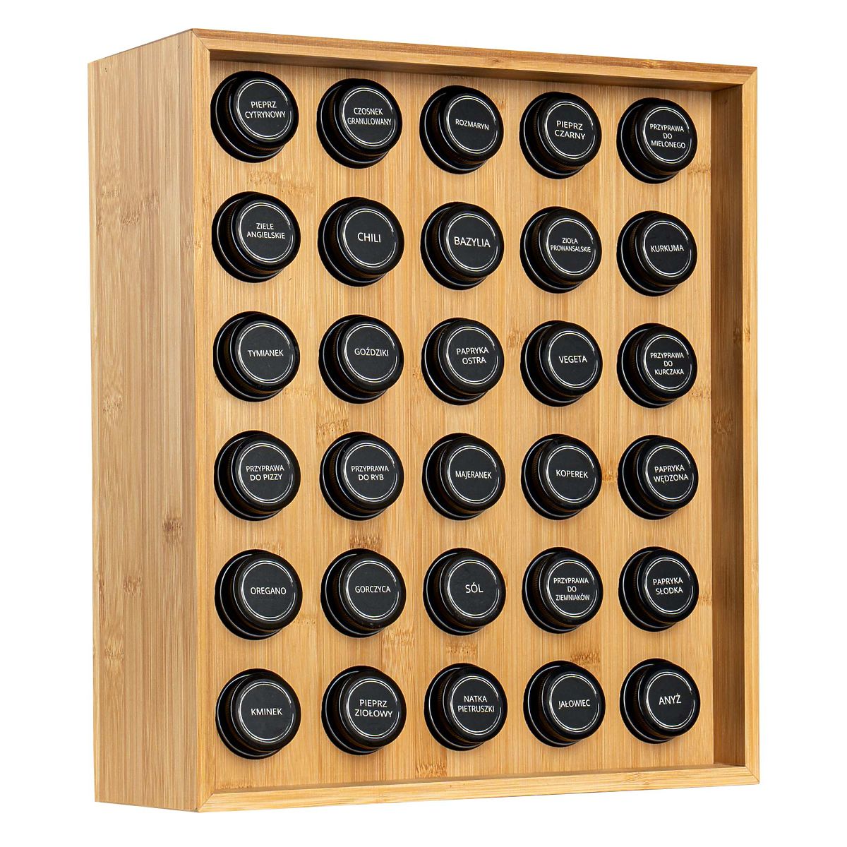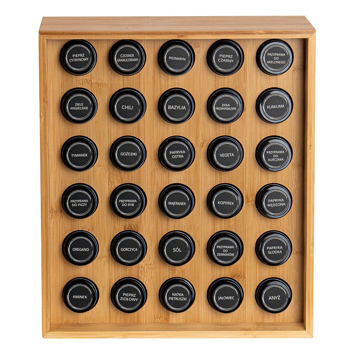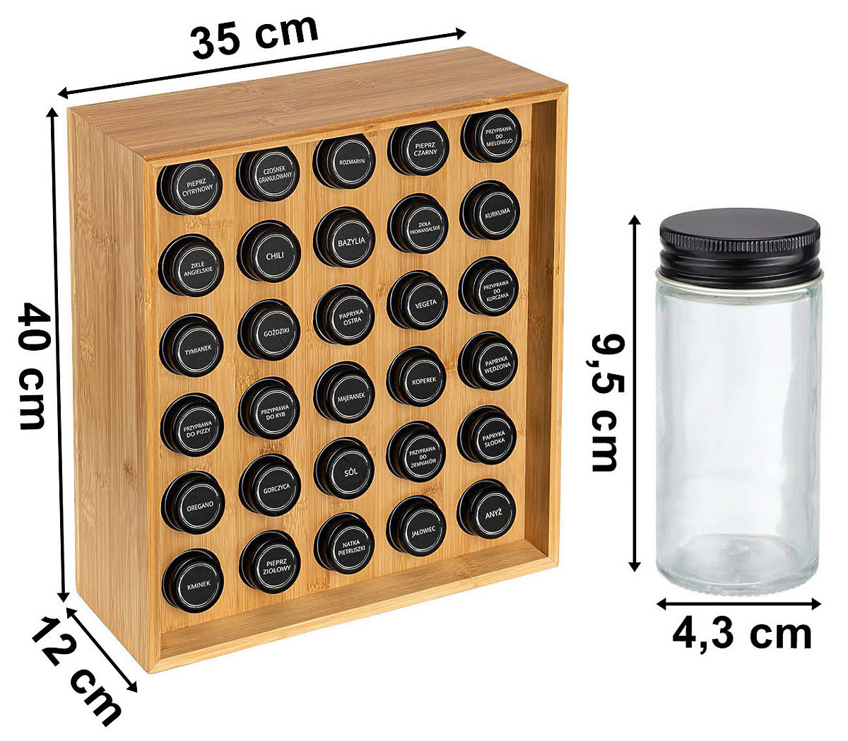 Gewürzständer SAFRAN natur Verwendung: Küche | Farbe: natur | Anzahl der Gläser: 30 Der Gewürzständer Safran Natur ist ein außergewöhnliches Accessoire für jede Küche, das Eleganz mit Funktionalität vereint. Hergestellt aus robustem Bambus, ist er nicht nur langlebig, sondern auch umweltfreundlich. Dank der 30 Gläser und den Gewürzetiketten ist die Ordnung leicht zu halten. Dieser moderne Ständer ist nicht nur eine praktische Lösung, sondern auch ein dekoratives Element, das Ihrer Küche Charakter verleiht. Warum Safran Natur wählen? ✔️ Robuster Bambus – langlebiges und natürliches Material ✔️ Set mit 30 Gläsern – komplette Gewürzorganisation ✔️ Etiketten mit Gewürznamen – einfache Identifikation ✔️ Elegantes Aussehen – ideal für moderne Interieurs ✔️ Einfache Pflege – leicht zu reinigen Organisieren Sie Ihre Küche elegant mit Safran Natur! ✅ Spezifikationen Material des Ständers: Bambusholz Material der Gläser: Glas + Metallverschluss Material der Etiketten: Polyethylen (PE) Produktgewicht: 5,67 kg Anzahl der Etiketten: 72, davon 12 zum eigenen Ausfüllen. ✅ Abmessungen Höhe des Ständers: 40 cm Breite des Ständers: 35 cm Tiefe des Ständers: 12 cm Durchmesser des Glases: 4,3 cm Höhe des Glases mit Deckel: 9,5 cm Weitere Informationen Die angegebenen Farben sind Richtwerte – sie können aufgrund unterschiedlicher Monitoreinstellungen und des Fotoanpassungsprozesses von den tatsächlichen abweichen. Die tatsächlichen Abmessungen können von den oben angegebenen abweichen. Die Fehlertoleranz kann +/- 5% betragen. Marke: Gockowiak EAN-Code: 5902340330708 Farbe: natur Höhe: 40 cm Breite: 35 cm Tiefe: 12 cm Anzahl der Gläser: 30 Stück