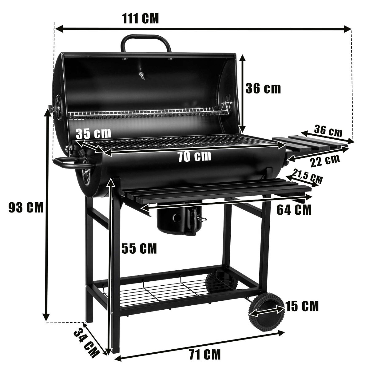 Garten Holzkohlegrill Barel 2 Roste BAREL ✔️Zwei Roste: 70 x 35 cm und 67 x 13 cm | ✔️Eingebautes Thermometer | ✔️Zwei klappbare Ablagen | ✔️Aschekasten im Set | Der Garten Holzkohlegrill Barel ist die perfekte Wahl für jeden Grillliebhaber, der hohe Qualität, Funktionalität und einzigartiges Design schätzt. Machen Sie Ihre Outdoor-Treffen zu einem unvergesslichen Erlebnis mit dem Barel Grill! Der Grill ist mit zwei verchromten Rosten mit den Maßen 70x35 cm und 67x13 cm ausgestattet, was die gleichzeitige Zubereitung einer großen Menge an Speisen ermöglicht, ideal für größere Treffen. Barel bietet nicht nur viel Grillfläche, sondern auch praktische Lösungen, die das Grillen erleichtern. Zwei klappbare Metallablagen an den Seiten sind der ideale Platz für Gewürze, Geschirr oder anderes notwendiges Zubehör. Dank der zwei Belüftungsöffnungen, die sich auf der linken Seite und im Deckel befinden, haben Sie die volle Kontrolle über den Luftstrom, was eine präzise Temperaturregelung im Inneren des Grills ermöglicht. Griffe und ein Paar Räder erleichtern das Platzieren des Grills an der gewünschten Stelle. Eine der interessanteren Eigenschaften des Barel Grills ist auch der eingebaute Temperatursensor im Deckel, der eine Temperaturkontrolle bis zu 350 Grad Celsius ermöglicht und ideale Bedingungen für die Zubereitung jeder Art von Speisen gewährleistet. Die gesamte Konstruktion besteht aus starkem Metall, das mit Pulverlack beschichtet ist, was dem Grill nicht nur ein ästhetisches Aussehen verleiht, sondern auch Haltbarkeit und Beständigkeit gegen hohe Temperaturen gewährleistet. Vorteile des Barel Grills: ✅Einzigartiges Design in Fassform: Attraktives Aussehen und hervorragende Grillbedingungen. ✅Zwei verchromte, rostfreie Roste: Möglichkeit, gleichzeitig eine große Menge an Speisen zuzubereiten. ✅Metallische, klappbare Ablagen: Praktischer Platz für Gewürze und Grillzubehör. ✅Eingebauter Temperatursensor bis 350 Grad Celsius: Ideale Bedingungen für die Zubereitung verschiedener Gerichte. ✅Zwei Belüftungsöffnungen für bessere Temperaturkontrolle: Präzise Regelung der Grillbedingungen. ✅Metallgriffe am Deckel und an der Seite: Sicheres und einfaches Öffnen. ✅Herausnehmbarer Aschekasten mit Zugregulierung ✅Räder für einfachen Transport: Einfaches Bewegen des Grills an jeden Ort. ✅Untere Gitter als Ablage: Zusätzlicher Platz für Brennstoff oder Zubehör. ✅Verzinkte Kohleschale und verchromte Roste: Langlebigkeit und einfache Pflege. ✅Hergestellt aus starkem Metall mit Pulverbeschichtung: Beständigkeit und Widerstandsfähigkeit gegen hohe Temperaturen Technische Spezifikation: Konstruktion: Starkes Metall, pulverbeschichtet Form: Fass Aschekasten: Metall, herausnehmbar, mit Zugregulierung Temperatursensor: Eingebaut im Deckel, bis 350 Grad C 2 Roste: ✅Hauptrost: 70x35 cm, verchromt ✅Zweiter Rost: 67x13 cm, verchromt Ablagen: Zwei metallische, klappbare Belüftungsöffnungen: Zwei, auf der linken Seite Griffe: Zwei metallische, am Deckel und auf der linken Seite Mobilität: Ein Paar Räder Zusätzlicher Raum: Unteres Gitter als Ablage Materialien: Kohleschale: Verzinktes Metall Roste: Verchromt Korpus: Starkes Metall, pulverbeschichtet Abmessungen: Gesamthöhe: 93 cm [geschlossen] Abmessungen des Fasses: 76 cm x 38 cm x 40 cm [Breite x Höhe x Tiefe] Gesamtbreite im ausgeklappten Zustand: 111 cm Vordere Ablage: 64 x 21,5 cm Seitliche Ablage: 36 x 22 cm Raddurchmesser: 15 cm Abmessungen des unteren Gitters: 59 x 29 cm Abmessungen des Griffs: 22 x 11 cm Abmessungen der Basis: 71 x 34 cm Vorteile des eingebauten Thermometers: ✅Präzise Temperaturüberwachung: Ermöglicht die genaue Überwachung der aktuellen Temperatur im Grill, was entscheidend für die optimale Zubereitung verschiedener Gerichte ist. ✅Hervorragende Grillergebnisse: Präzision bei der Temperaturkontrolle ermöglicht die ideale Anpassung der Bedingungen an die Art des zubereiteten Fleisches, Fisches oder Gemüses, was jedes Mal hervorragende Ergebnisse garantiert. ✅Reduzierung des Anbrennrisikos: Durch die ständige Temperaturüberwachung wird das Risiko des Anbrennens von Speisen erheblich reduziert. ✅Optimierung des Kohleverbrauchs: Zu wissen, welche Temperatur der Grill aktuell erreicht hat, ermöglicht eine effizientere Steuerung des Kohleverbrauchs, indem nur dann nachgelegt wird, wenn es wirklich nötig ist. ✅Sicherheit: Die Temperaturüberwachung hilft, Gefahren im Zusammenhang mit übermäßiger Erwärmung des Grills zu vermeiden, was zu Schäden oder sogar einem Brand führen kann. ✅Benutzerkomfort: Das im Grillgehäuse eingebaute Thermometer ist immer zur Hand und eliminiert die Notwendigkeit, zusätzliche Geräte zur Temperaturmessung zu verwenden. Vorteile der Luftstromregulierung im Grill: ✅Präzise Temperaturkontrolle: Ermöglicht die genaue Anpassung der Temperatur, was entscheidend für die richtige Zubereitung von Speisen ist. ✅Bessere Grillergebnisse: Gleichmäßiges Grillen sorgt für besseren Geschmack und Textur der Speisen. ✅Brennstoffeinsparung: Die Luftkontrolle reduziert den Verbrauch von Kohle oder Holz und macht das Grillen wirtschaftlicher. ✅Schnelleres Anzünden: Beschleunigt den Anzündprozess und ermöglicht einen schnelleren Grillstart. ✅Erhöhte Sicherheit: Minimiert das Risiko von Überhitzung und Brand. ✅Vielseitigkeit der Speisen: Ermöglicht die Verwendung verschiedener Grilltechniken, die an die Art der Speisen angepasst sind. ✅Stabile Grillbedingungen: Hält die Temperatur auch bei wechselhaftem Wetter stabil. ✅Längere Lebensdauer des Grills: Hilft, den Grill in gutem Zustand zu halten, indem die Rußablagerung reduziert wird. Der Garten Holzkohlegrill Barel ist die perfekte Wahl für jeden Grillliebhaber, der hohe Qualität, Funktionalität und einzigartiges Design schätzt. Machen Sie Ihre Outdoor-Treffen zu einem unvergesslichen Erlebnis mit dem Barel Grill! HINWEIS | Die dargeste