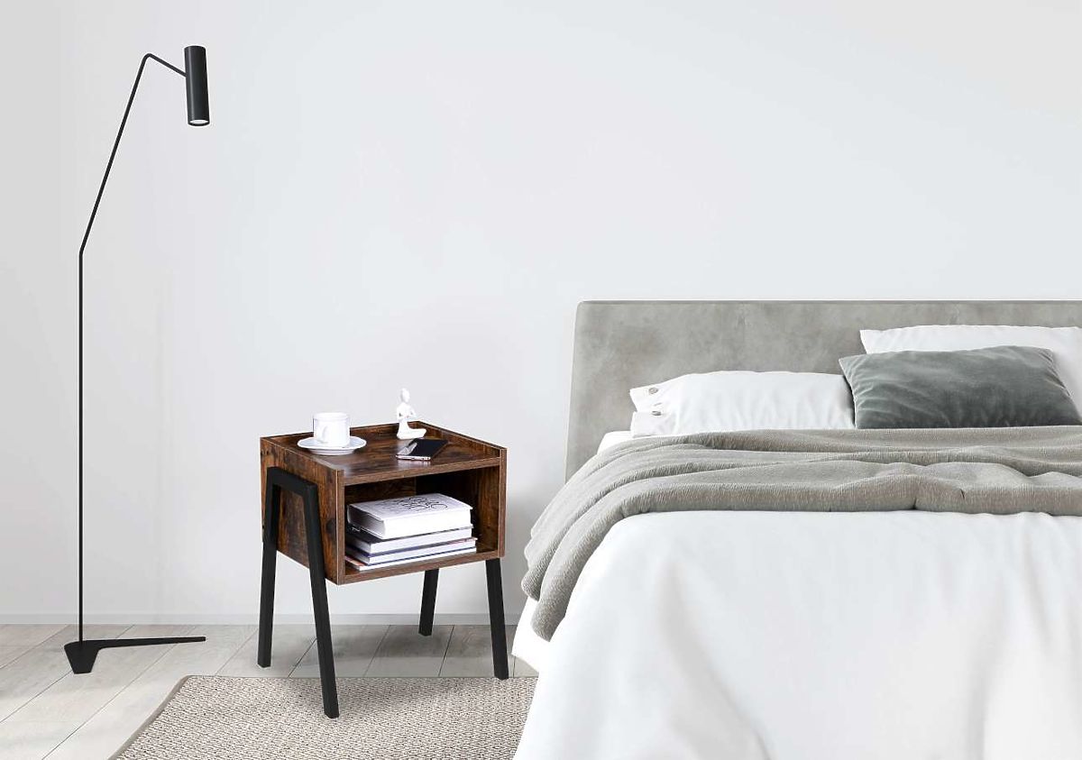 Skive ist ein außergewöhnlicher und praktischer Nachttisch. Hergestellt aus Materialien höchster Qualität mit Augenmerk auf jedes Detail. Die stabile Konstruktion aus pulverbeschichtetem Stahl und laminierten Platten, die an antike Eiche erinnern, ergänzen sich hervorragend und schaffen einen Nachttisch mit modernem Design. Das Modell passt perfekt in originell eingerichtete Räume. Es eignet sich ideal für den Loft-, Industrie- und Vintage-Stil. Skive ist ein vielseitiges Modell. Dank der kompakten durchdachten Konstruktion kann es auch als Beistelltisch neben dem Sofa dienen. Regale und ein großes Fach bieten problemlos Platz für Lieblingsbücher, Zeitschriften und Dinge, die wir griffbereit haben müssen, wie Brillen oder Telefone.