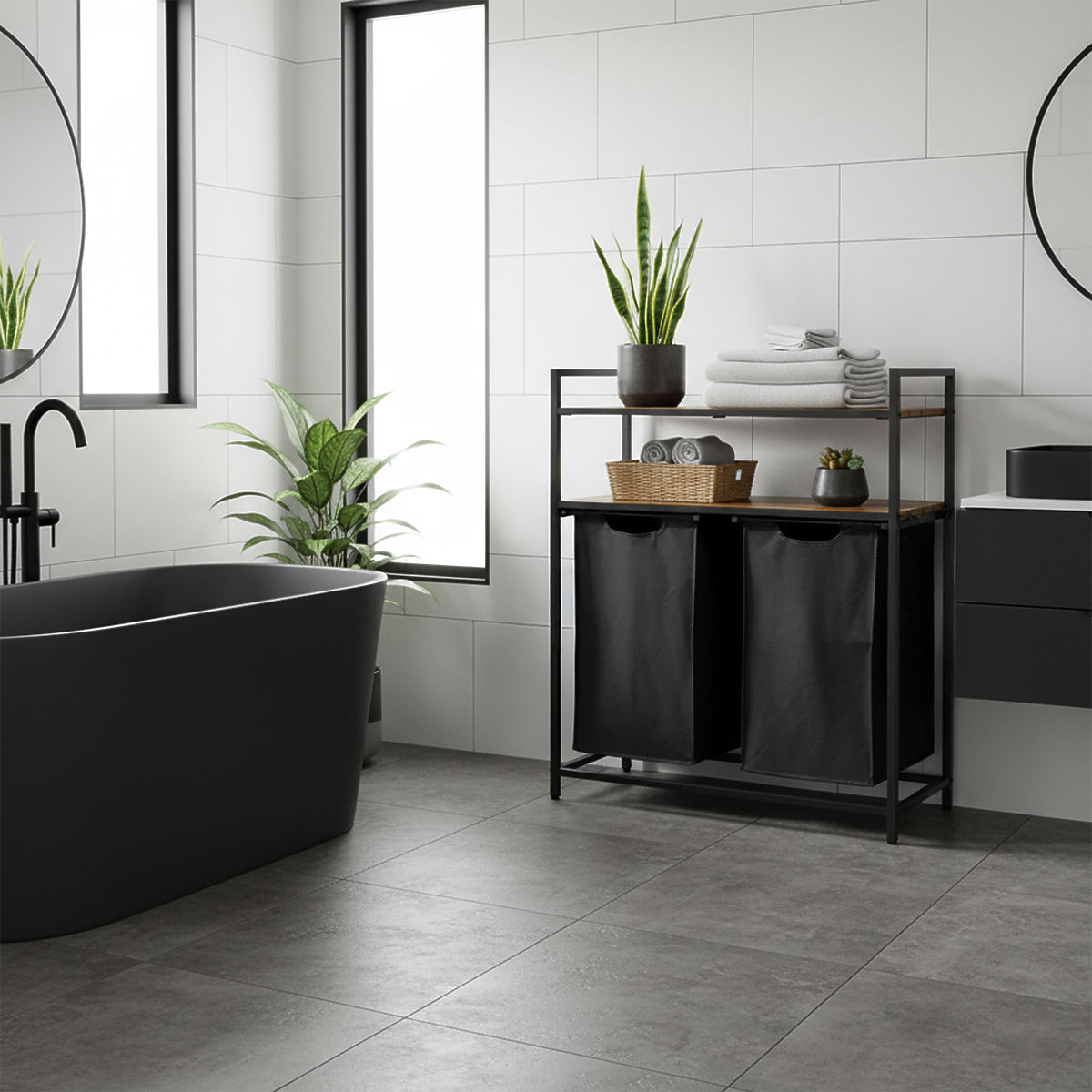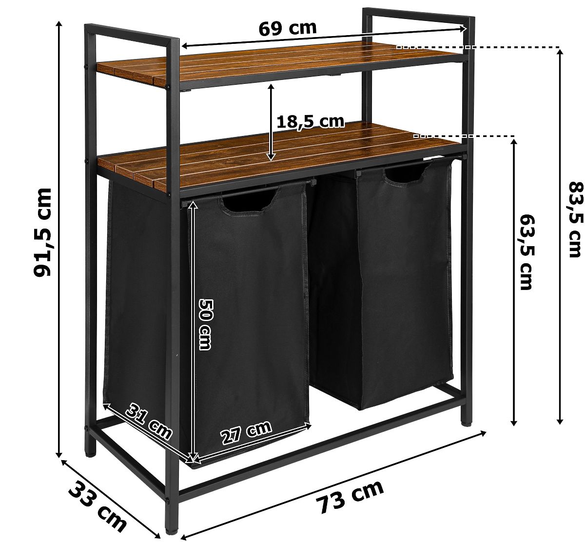 Wäschekorb mit Regalen 2 Kammern MIRUN