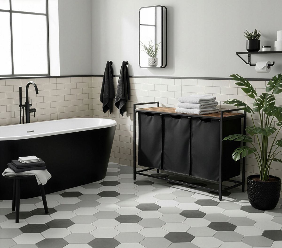 Luka-home.de   »   Badezimmer und Toilette   /   Badezimmeraccessoires   /   Wäschekorb mit Regal 3 Fächer ARTUS