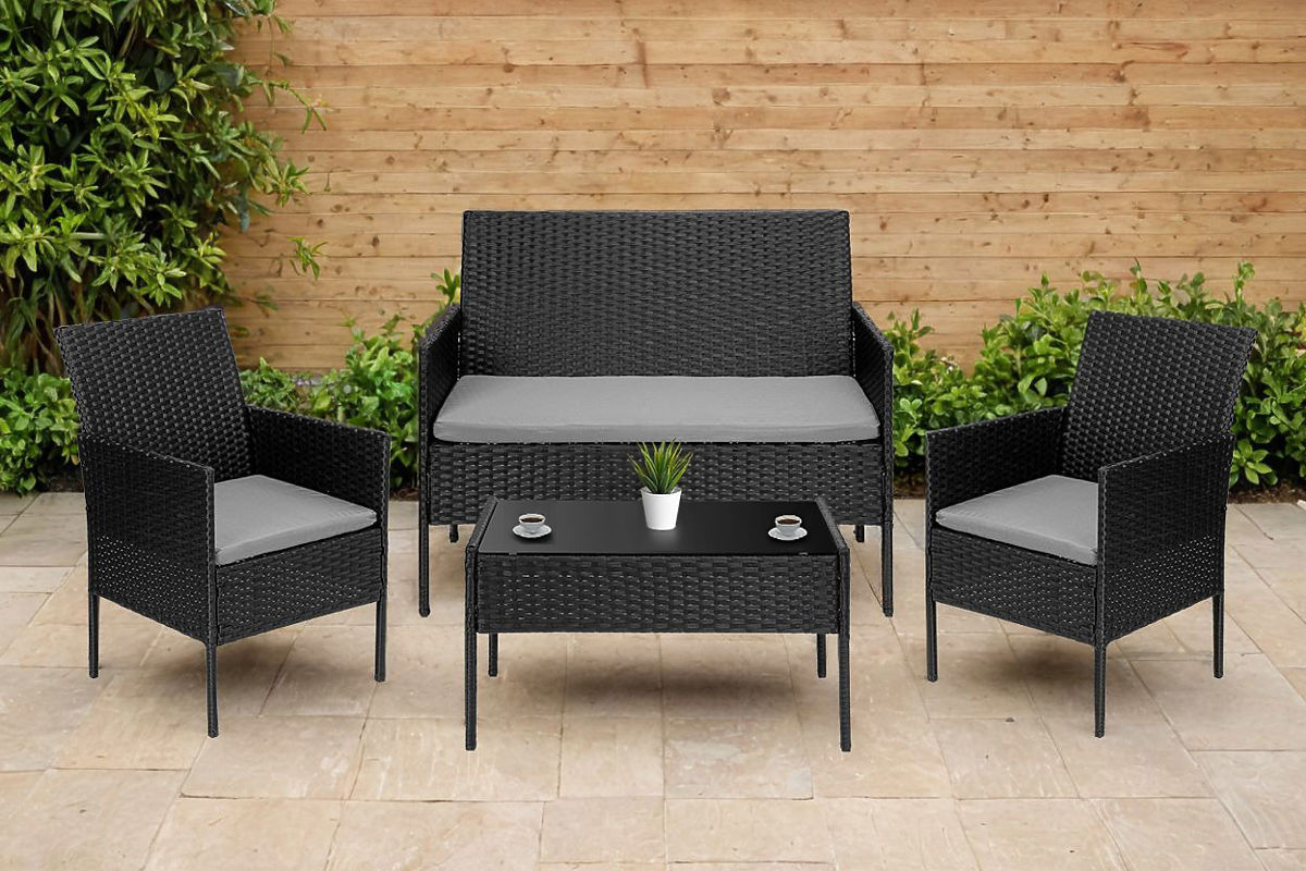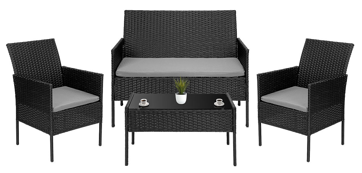 Gartenmöbel aus Technorattan Set 4-in-1 MAGNOLIA schwarz graue Kissen