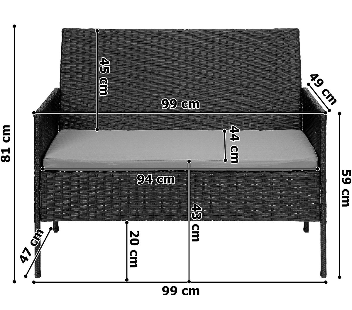 Farbe: Schwarzes Technorattan, beige Kissen