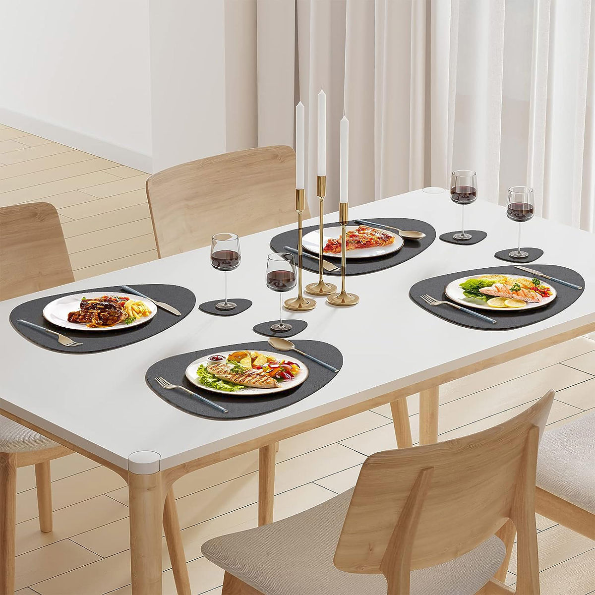 Tischset TRIVAL GREY Das Trival Tischset ist ein hochwertiges Set von Tischunterlagen in elegantem Grau, hergestellt aus strapazierfähigem PVC-Material. Dieses Set ist die ideale Lösung, um Ihren Tisch nicht nur vor Flecken und Beschädigungen zu schützen, sondern auch um Ihrem Interieur Eleganz zu verleihen. Das Set enthält 4 große Unterlagen, die sich hervorragend unter Teller eignen und eine stabile und ästhetische Basis für Ihre Speisen bieten. Zusätzlich enthält das Set 4 kleinere Unterlagen, ideal für Tassen und Becher, die die Tischoberfläche vor möglichen Schäden durch heiße Getränke schützen. Das Trival Tischset pflegt nicht nur Ihren Tisch, sondern bereichert auch dessen Aussehen. ✔️Spezifikationen: Material: PVC Anzahl der Unterlagen im Set: 8 (4 große, 4 kleine) Dicke der Unterlagen: 2 mm Gewicht mit Verpackung: 750 g Farbe: Grau ✔️Abmessungen: Große Unterlage: 45 x 36,5 cm Kleine Unterlage: 14 x 11 cm Zusätzliche Informationen Die dargestellten Farben sind als Richtwerte zu betrachten - sie können aufgrund unterschiedlicher Monitoreinstellungen und des Fotoanpassungsprozesses von den tatsächlichen Farben abweichen. Die tatsächlichen Abmessungen können von den oben genannten abweichen. Die Fehlertoleranz kann +/- 5% betragen. Marke: Gockowiak EAN-Code: 5902340331958 Farbe: Grau Anzahl der Unterlagen: 8 Abmessungen der großen Unterlage: 45 cm x 36,5 cm Abmessungen der kleinen Unterlage: 14 x 11 cm Material: PVC