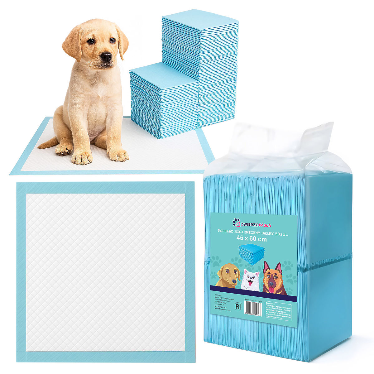 Hygienische Unterlagen BARRY 45x60 50 Stk. Verwendung: Für kleine Tiere | Größe: 45 x 60 cm Die hygienischen Unterlagen Barry sind eine praktische und zuverlässige Unterstützung für jeden Hundebesitzer. Sie erleichtern die Sauberhaltung im Haushalt, fördern die hygienischen Gewohnheiten bei Welpen und schützen effektiv Böden und Schlafplätze vor Verschmutzung. Dank ihnen können Sie und Ihr Haustier jeden Tag mehr Komfort und Ruhe genießen.