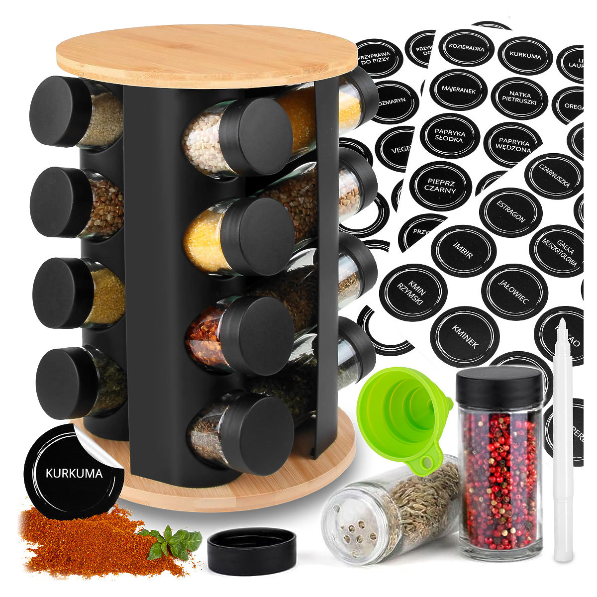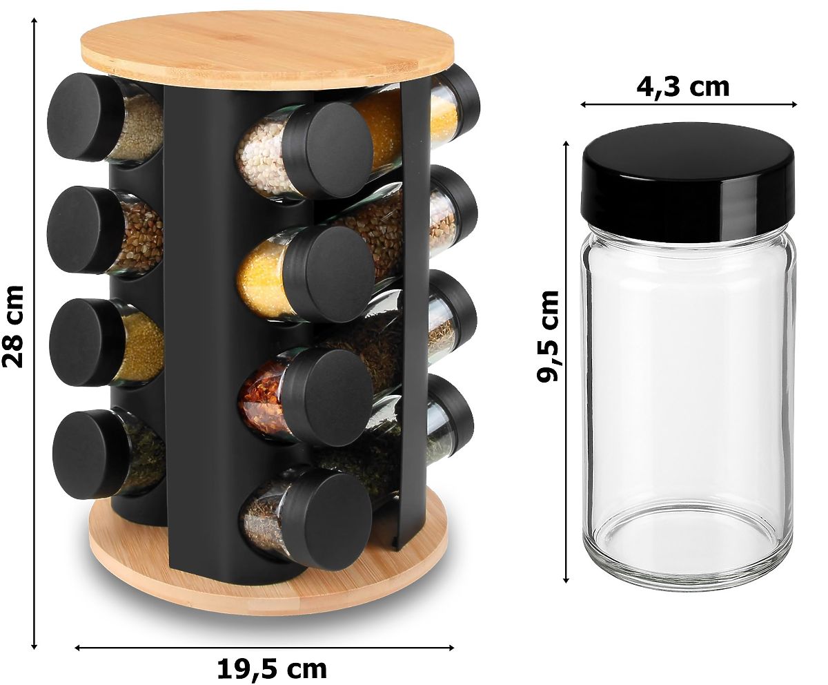 Drehbarer Gewürzständer ROMERO 16 Gläser + 72 Aufkleber
