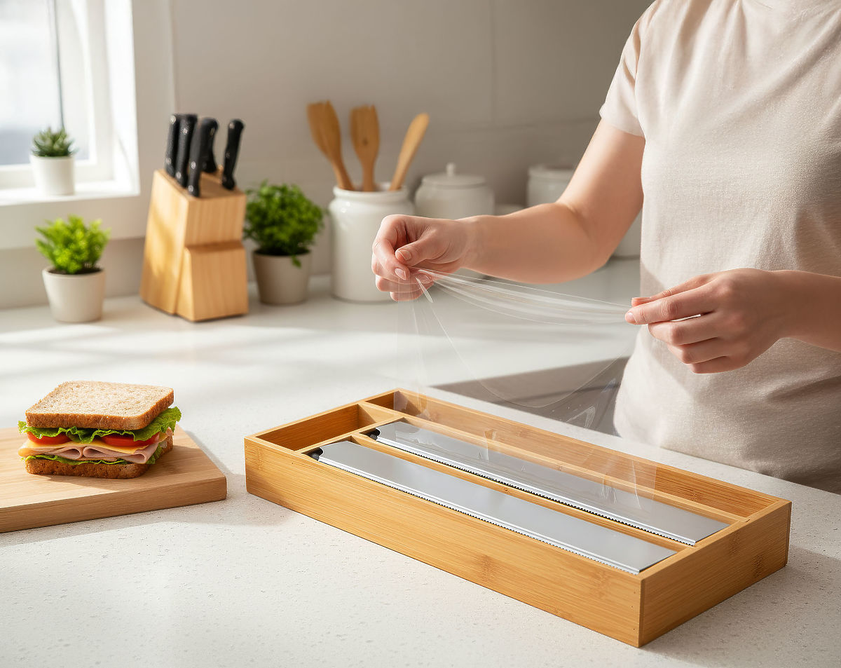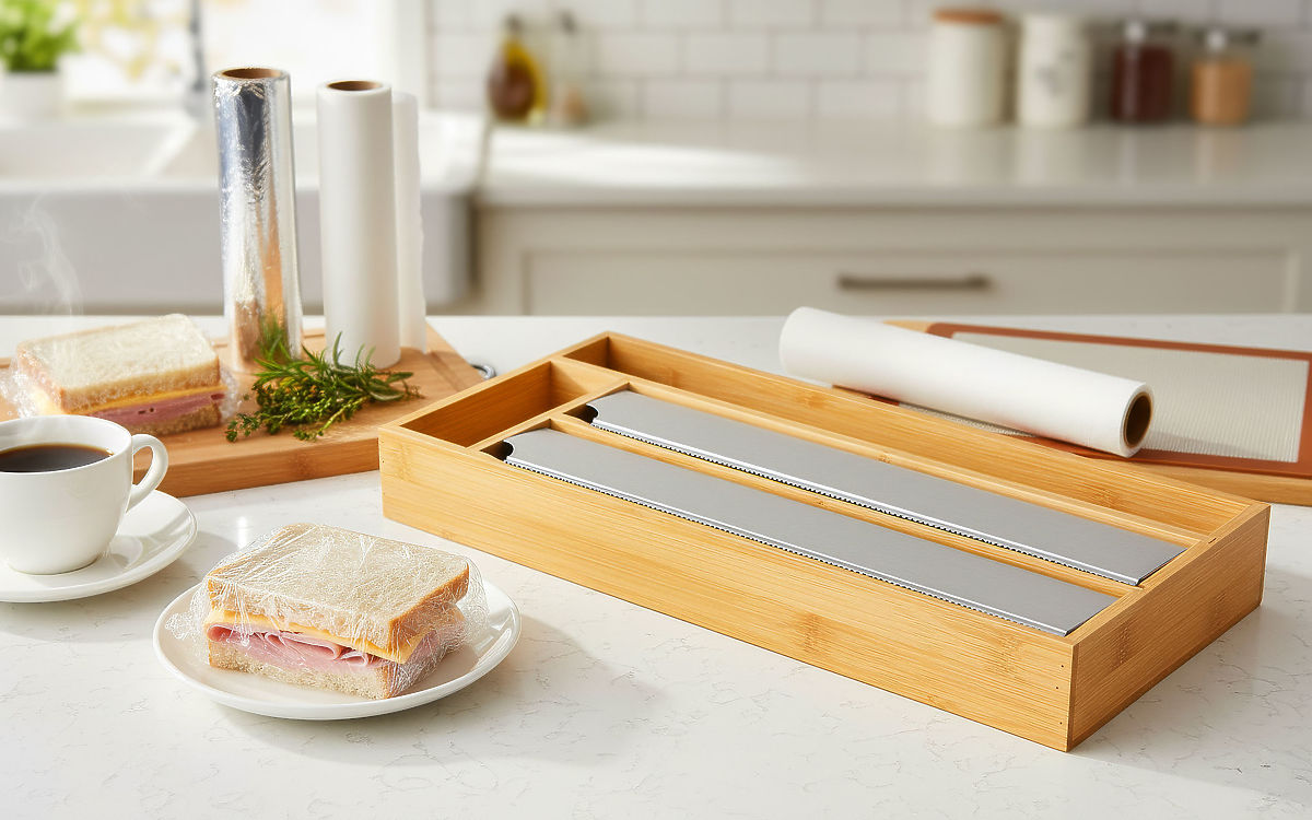Bambusfolie-Spender mit 4 Fächern und präzisen Edelstahlschneidern. .. mehr