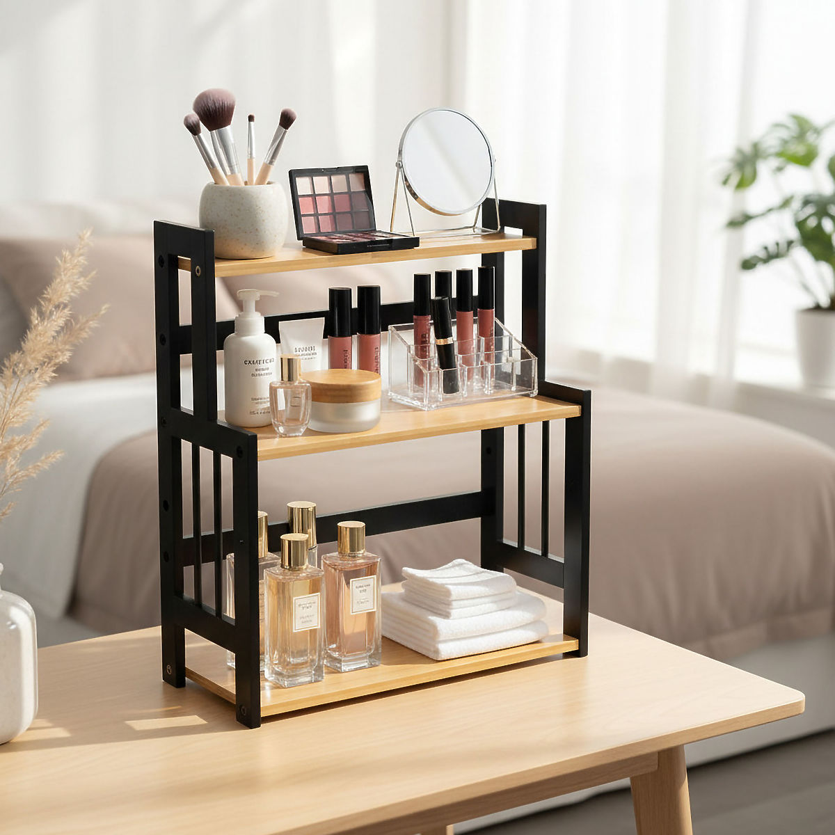 Bambusregal für Gewürze mit stabilem schwarzen Rahmen. .. mehr