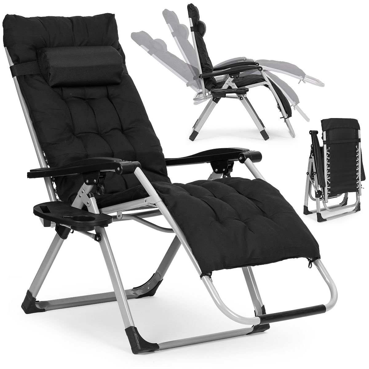 Luka-home.de » Gartenmöbel / Gartenliegen / Garten-Strandliege mit verstellbarer Rückenlehne und Kissen + Kopfstütze schwarz MultiGarden