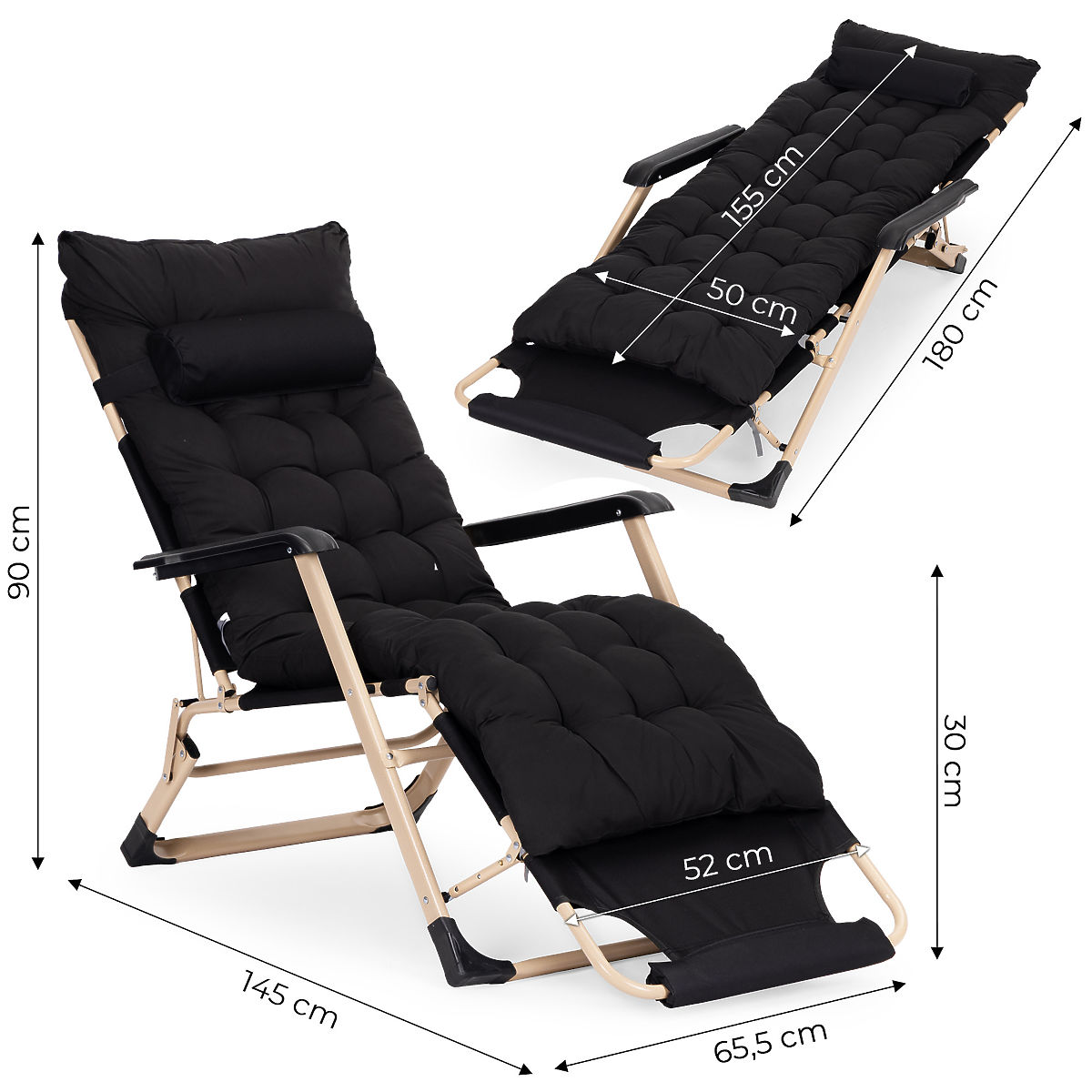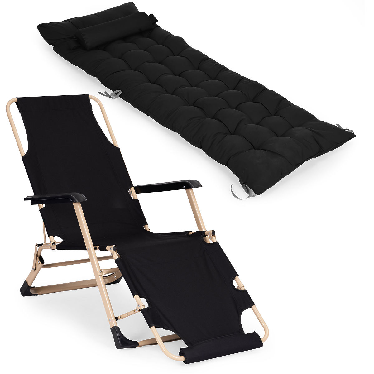 Luka-home.de » Gartenmöbel / Gartenliegen / Garten-Strandliege 2-in-1 mit Kissen, verstellbarer Fußstütze, schwarz, goldener Rahmen MultiGarden