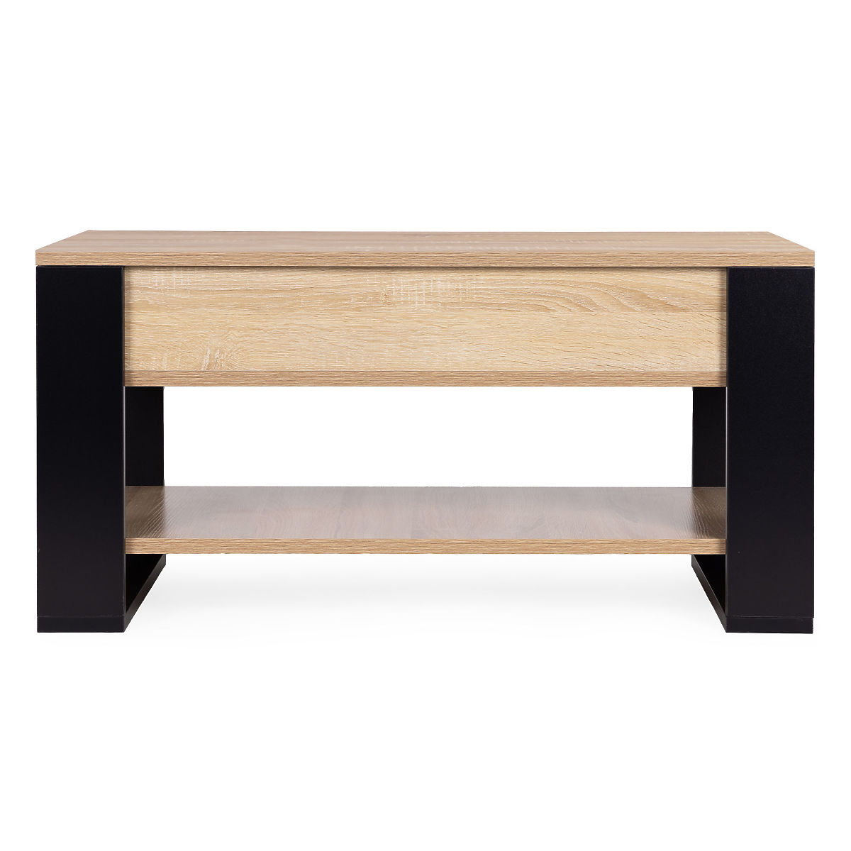Luka-home.de » Tische und Couchtische / Couchtische / Ausziehbarer Couchtisch mit aufklappbarer Platte 90 cm Stauraum Regal Eiche Sonoma ModernHome