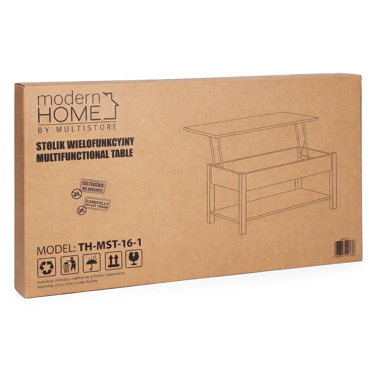 Der Couchtisch mit aufklappbarer Platte der Marke ModernHome ist eine Lösung, die sich natürlich in Ihren täglichen Rhythmus einfügt. Er bewährt sich sowohl beim Entspannen mit einer Tasse Kaffee als auch beim Arbeiten mit dem Laptop oder beim Essen vor dem Fernseher. Dank seiner Funktionalität ermöglicht er eine bequeme Nutzung des Wohnzimmers, ohne dass zusätzliches Mobiliar erforderlich ist. Er ist das praktische Zentrum alltäglicher Aktivitäten, das die Organisation erleichtert und garantiert, dass Sie immer alles zur Hand haben.