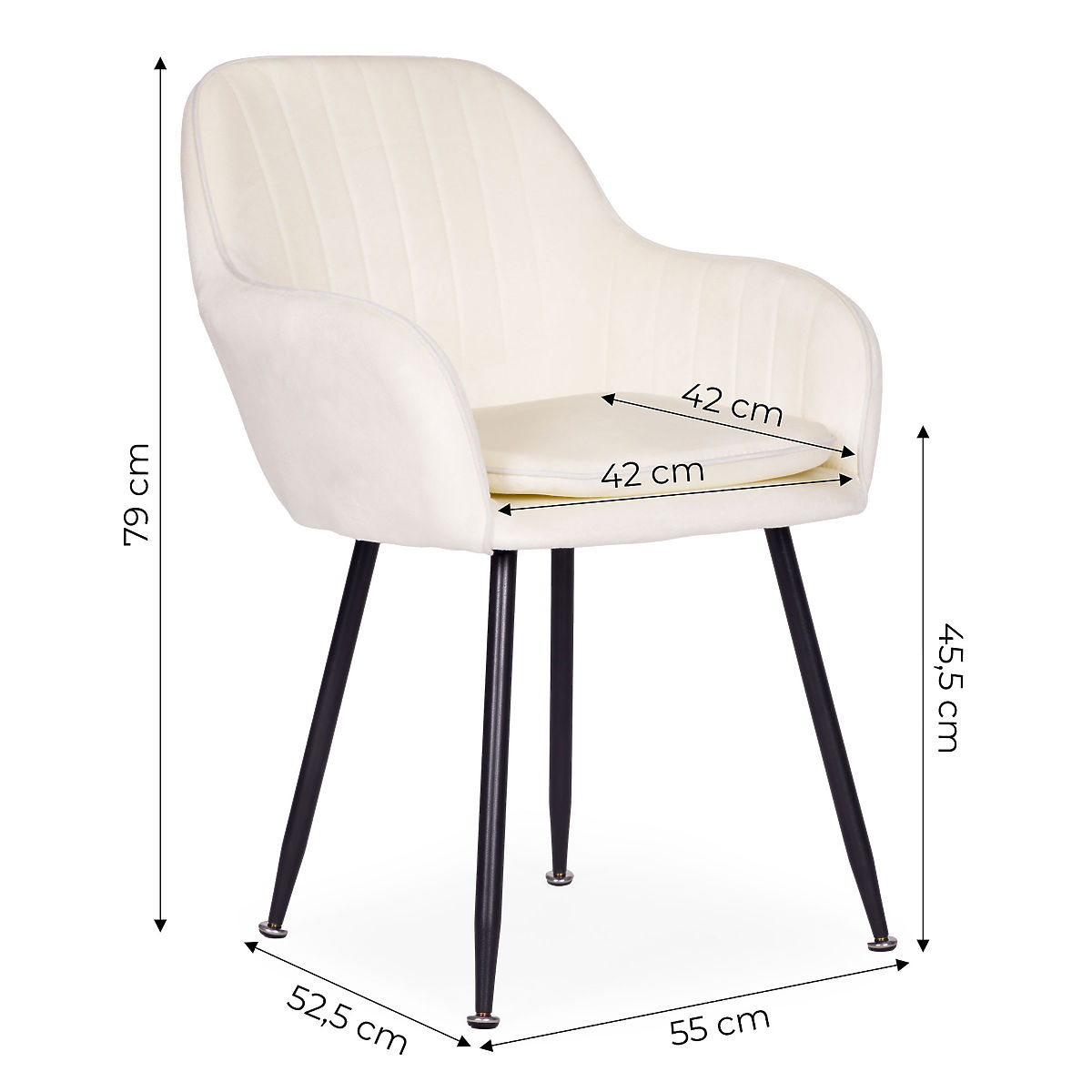 STABILITÄT BEI DER NUTZUNGStahlbeine zeichnen sich durch Langlebigkeit und Widerstandsfähigkeit bei täglichem Gebrauch aus, wodurch der Stuhl seine Festigkeit und Stabilität lange behält. Ihre schlanke Form verleiht der gesamten Konstruktion Leichtigkeit und modernen Charakter, ohne das Arrangement zu belasten. Die dunkle Ausführung schafft einen eleganten Kontrast zur hellen Polsterung und betont das stilvolle Aussehen des Möbels, und die verwendeten Unterlagen schützen den Boden vor Kratzern, was die Funktionalität im Alltag erhöht.