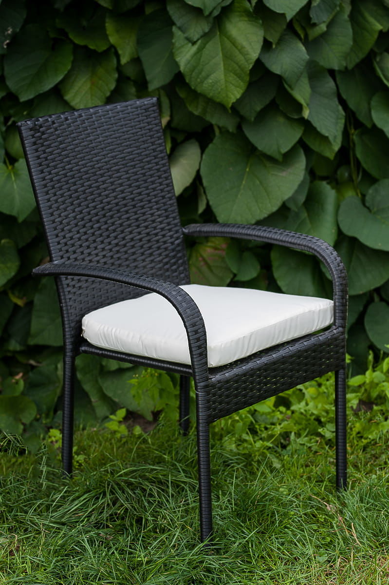 Die Gartenmöbel AVVICENTE sind die Verkörperung von Eleganz und Funktionalität, entworfen für diejenigen, die ihrer Garten- oder Terrassenfläche einen Hauch von Luxus verleihen möchten, ohne auf Praktikabilität zu verzichten. Dank der leichten Konstruktion des Tisches ermöglicht dieses Set ein einfaches Umstellen, sodass der Außenbereich schnell an aktuelle Bedürfnisse oder Anlässe angepasst werden kann. Hergestellt aus hochwertigem synthetischem Rattan, erfordert die Gartenmöbel AVVICENTE keine aufwendige Pflege und sind gleichzeitig beständig gegen ungünstige Einflüsse von Regen, intensiver Sonneneinstrahlung und Frost. Das schöne Erscheinungsbild der AVVICENTE-Möbel, kombiniert mit bequemen Stühlen und der Haltbarkeit des Materials, schafft ideale Bedingungen für Entspannung an der frischen Luft und sorgt für eine komfortable Umgebung für lange Sommerabende. Es ist eine ausgezeichnete Wahl für diejenigen, die Gartenmöbel aus Technorattan suchen, die viele Jahre dienen und gleichzeitig Ästhetik und Funktionalität bewahren. Farbe des AVVICENTE-Sets: schwarz – einheitlich, fein gestreifte Struktur (Tisch und Stühle unterscheiden sich leicht in der Flechtstruktur – siehe Fotos in der Produktgalerie)