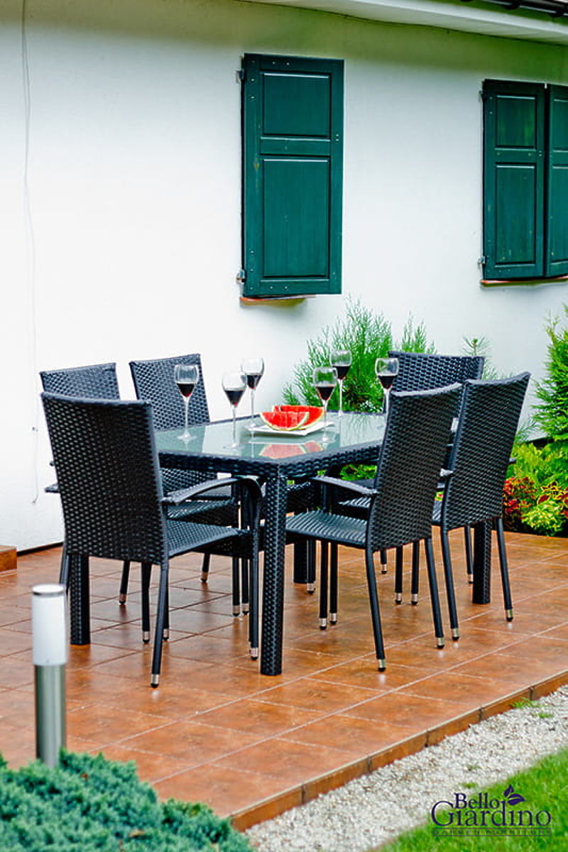 Luka-home.de » Gartenmöbel / Gartensets / Essgruppe aus Technorattan (Tisch 150×90 cm + 6 × Stühle) AVVICENTE, schwarz