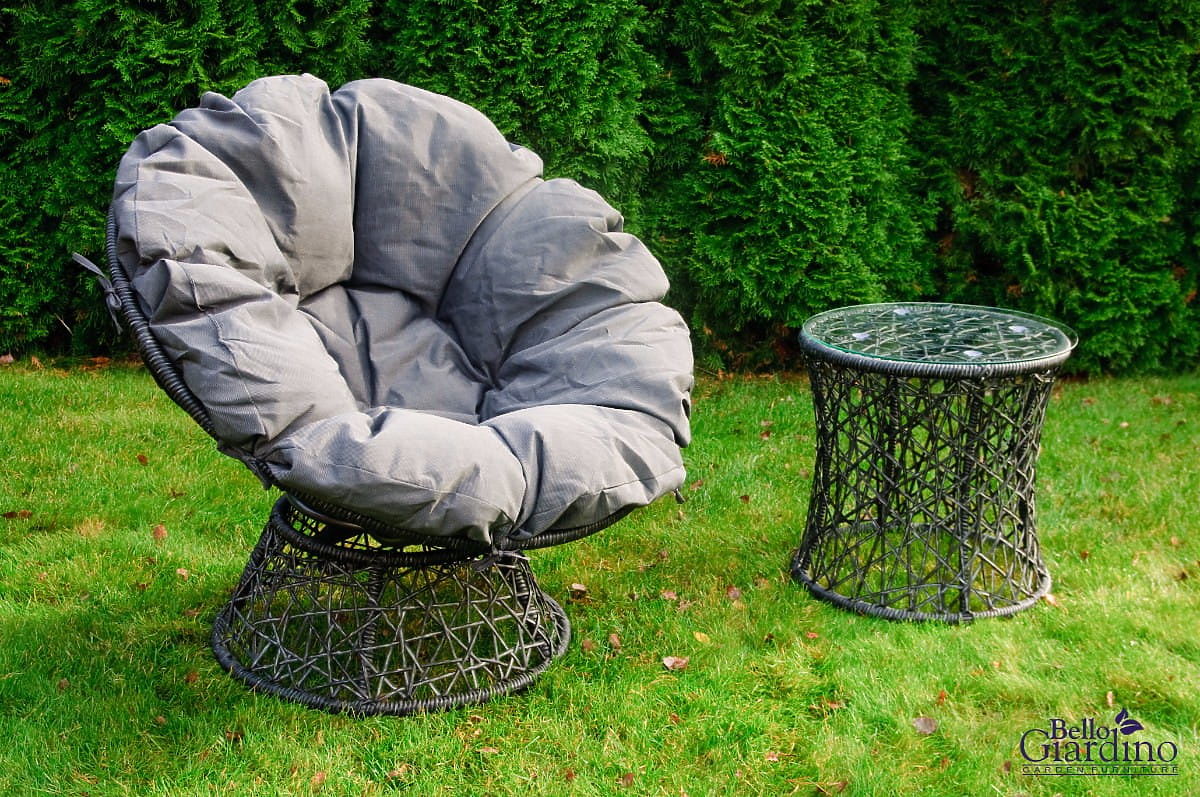 Die TWIST-Liege zieht mit ihrem effektvollen Design und innovativen Form die Aufmerksamkeit auf sich und bringt ein Element von Modernität und Originalität in jeden Außenbereich. Die Gartenliege verfügt über eine drehbare Konstruktion, die eine einfache Anpassung der Position nach individuellen Vorlieben ermöglicht und somit den Komfort beim Entspannen erhöht. Die Balkonliege aus hochwertigem synthetischem Rattan ist witterungsbeständig, was ihre Langlebigkeit und problemlose Nutzung über Jahre hinweg gewährleistet. Darüber hinaus erhöht das beeindruckend weiche Kissen aus robustem Material den Nutzungskomfort, wodurch die Gartenliege zum idealen Ort für Entspannung im ruhigen heimischen Garten wird. Es ist eine ausgezeichnete Wahl für diejenigen, die Wert auf die Kombination von Funktionalität, Komfort und einzigartigem Stil in der Gestaltung von Außenbereichen legen. Farbe der TWIST-Liege: graue Melierung, ungleichmäßiges Geflecht: Technorattan 7-8mm x 1,2mm, glatte Struktur Möbelkonstruktion: Stahl 1 x Liege: Durchmesser: 85 cm Sitztiefe: 50 cm Höhe: 86 cm Basisdurchmesser: 56 cm Basishöhe: 32 cm 1 x Tisch Durchmesser: 45 cm Höhe: 45 cm Das Set wird in 1 Karton mit den Maßen 90x90x68 cm, Gewicht 20 kg, versendet. Kissen in dunkelgrauer Farbe im Preis der Liege enthalten! Der Kissenbezug ist aus hochwertigem, mit Teflon beschichtetem Stoff (100% Polyester) genäht, der ihn vor Feuchtigkeit schützt. Kissendicke: 15 cm. Die Liege dreht sich um 360 Grad. Technorattan ist witterungsbeständig, jedoch empfehlen wir zur längeren Erhaltung des unveränderten Aussehens der Möbel die Nutzung und Lagerung des Produkts unter einem Unterstand oder den Kauf einer Schutzhülle. Die Hülle in dunkelgrauer Farbe ist einteilig und hat unten eine Kordel, die durch Metallösen gefädelt ist. Alle Hüllen werden maßgefertigt und die Lieferzeit beträgt ca. 21 Werktage. Stellen Sie sich Gartenmöbel vor, die Ihre Erwartungen in jeder Hinsicht übertreffen – von der Haltbarkeit bis zum Design. Hier ist BELLO GIARDINO, wo jedes Detail zählt und Luxus auf Funktionalität trifft: Unzerstörbare Qualität: Unser synthetisches Rattan garantiert, dass die Möbel jahrelang halten, ohne an Schönheit oder Haltbarkeit zu verlieren. Wetterbeständigkeit: Unsere Möbel trotzen den härtesten Wetterbedingungen, von sengender Sonne bis zu eisigen Wintern, und bleiben dabei stets schön. Luxuriöser Komfort: Dicke, weiche Kissen laden zur Entspannung ein und bieten Komfort, der schwer anderswo zu finden ist. Leichtigkeit und Stabilität: Die Aluminiumkonstruktion vereint das Beste aus beiden Welten – sie ist leicht, aber äußerst stabil. Design, das verzaubert: Jedes Element unserer Möbel wurde mit Blick auf Ästhetik und Funktionalität entworfen, um in jede Umgebung zu passen. Ob Sie Minimalismus lieben oder reiche, elegante Arrangements schätzen, unsere Möbel erfüllen Ihre Erwartungen, überschreiten die Grenzen gewöhnlicher Funktionalität und Ästhetik. Wir versichern, dass selbst die anspruchsvollsten Kunden dem Komfort und Stil, den BELLO GIARDINO bietet, nicht widerstehen können. Machen Sie Ihren Garten, Ihre Terrasse oder Ihren Balkon zu einer Oase der Entspannung und Eleganz, die Sie schon immer haben wollten. Warten Sie nicht, entdecken Sie BELLO GIARDINO noch heute und verwandeln Sie Ihre Außenbereiche in Orte, von denen Sie immer geträumt haben. Fotos von Möbeln von unseren Kunden: