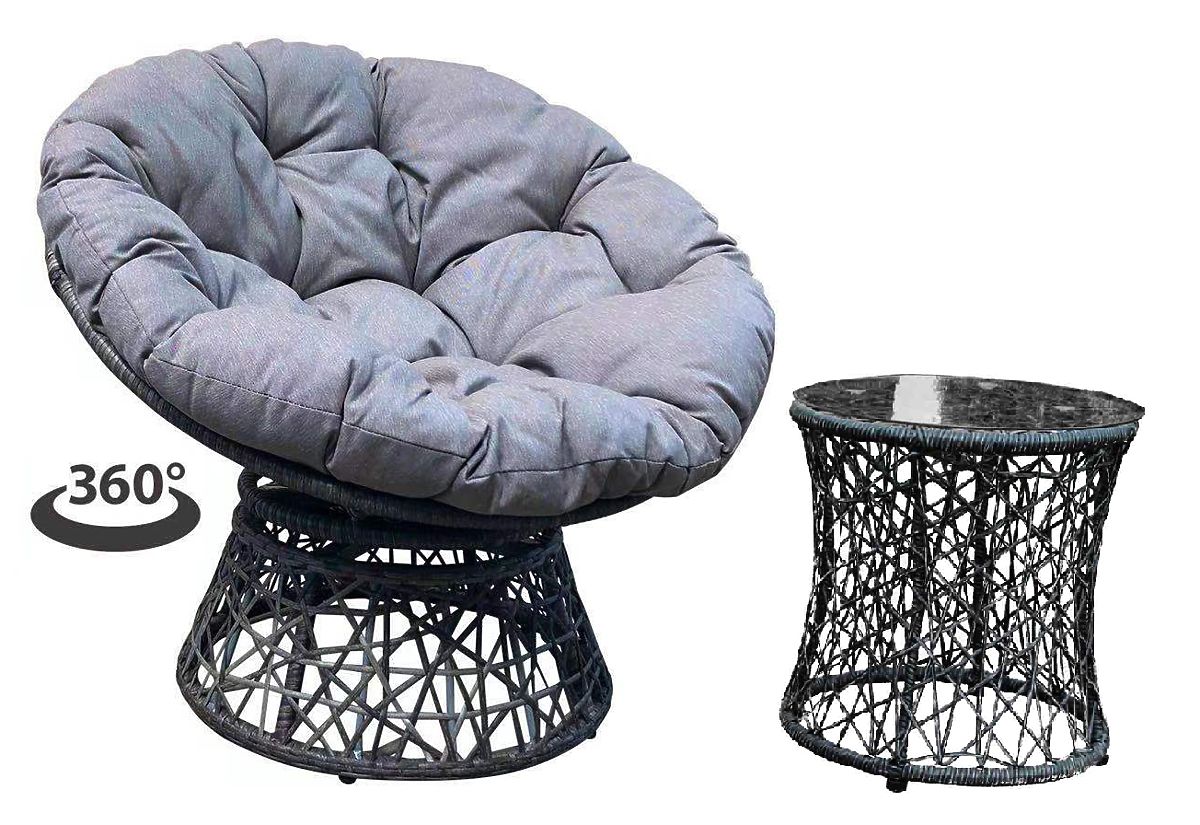 Gartenliege aus Technorattan + Tisch TWIST grau