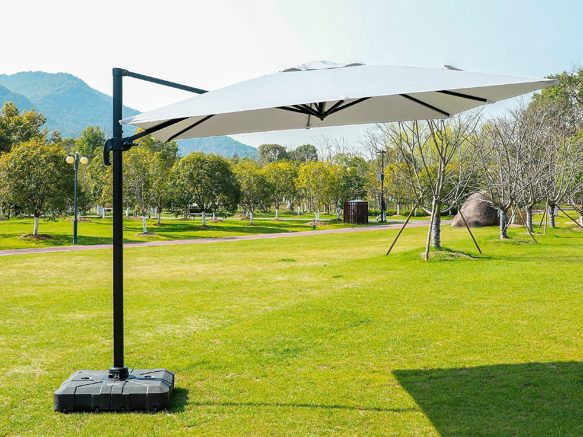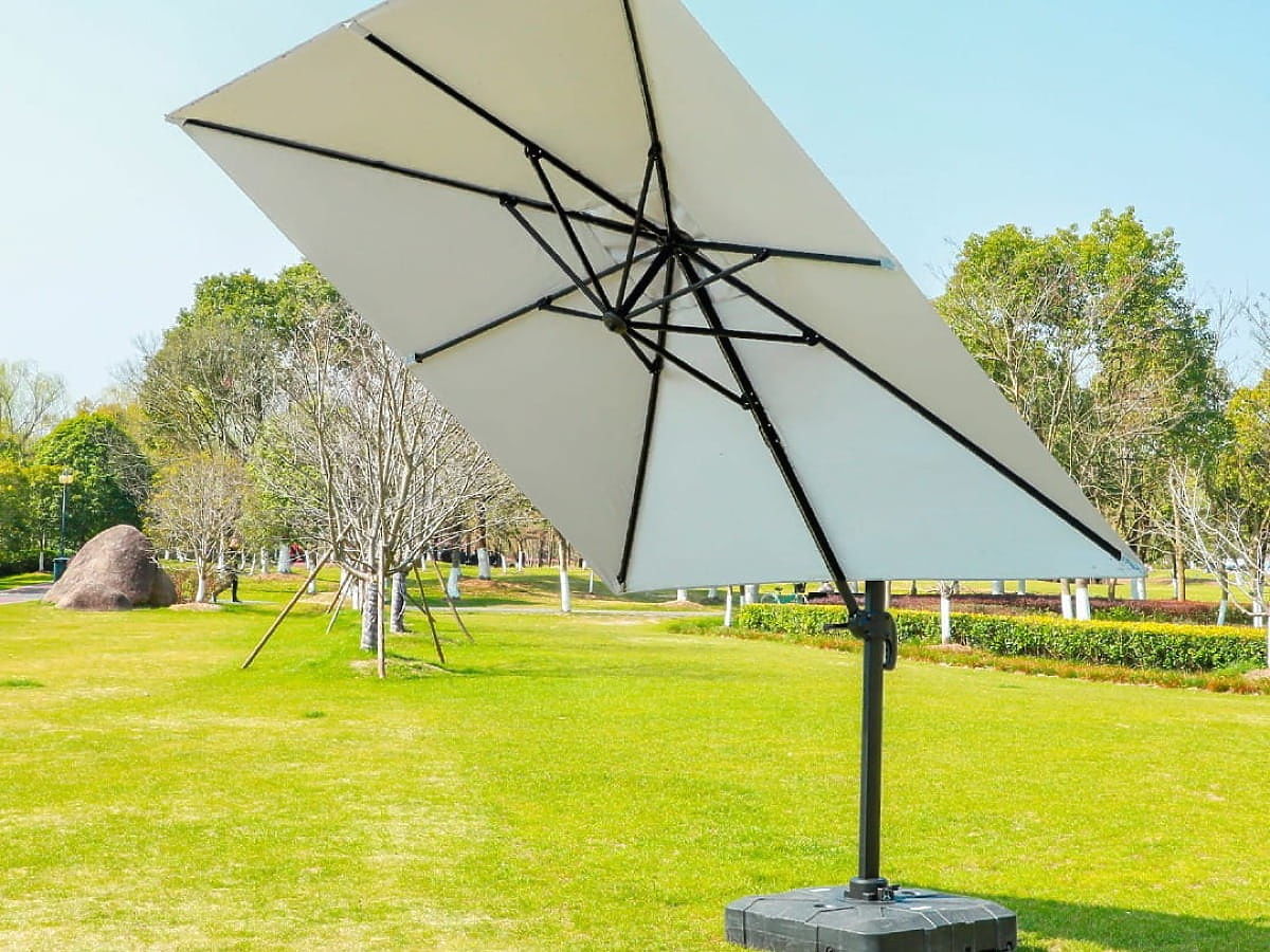 Großer quadratischer Gartenschirm mit verstellbarem Neigungswinkel. .. mehr
