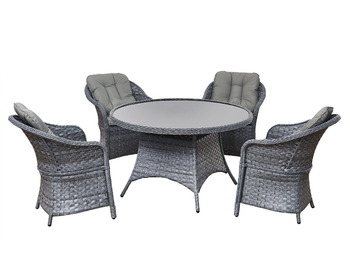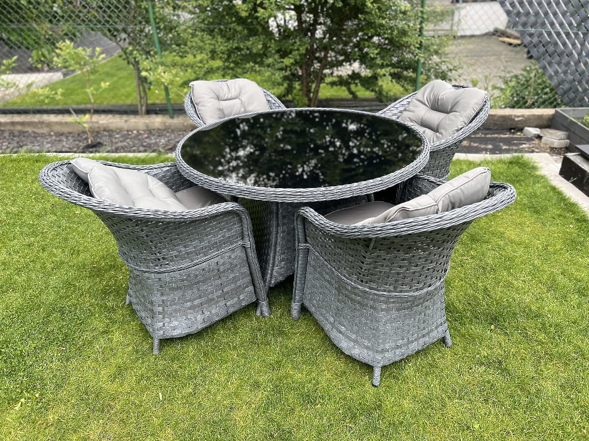 Essgruppe aus Technorattan (runder Tisch + 4 Sessel) MODERNO grau