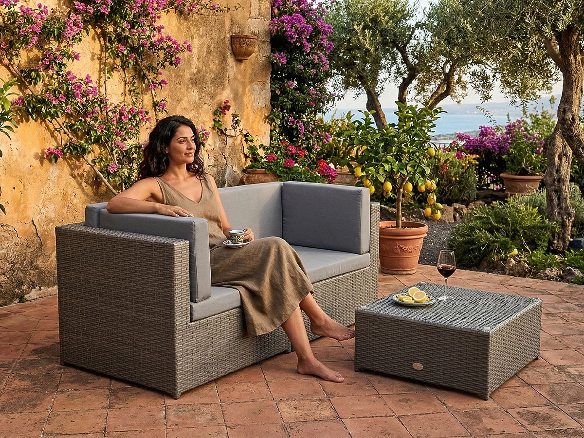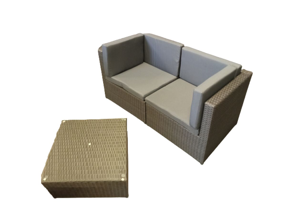 Kleine Terrassenset aus Technorattan (Sofa+Tisch) TINTO grau