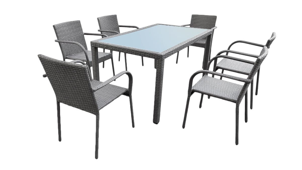 Essgruppe aus Technorattan (Tisch 150x90cm + 6 Stühle) AVVICENTE grau