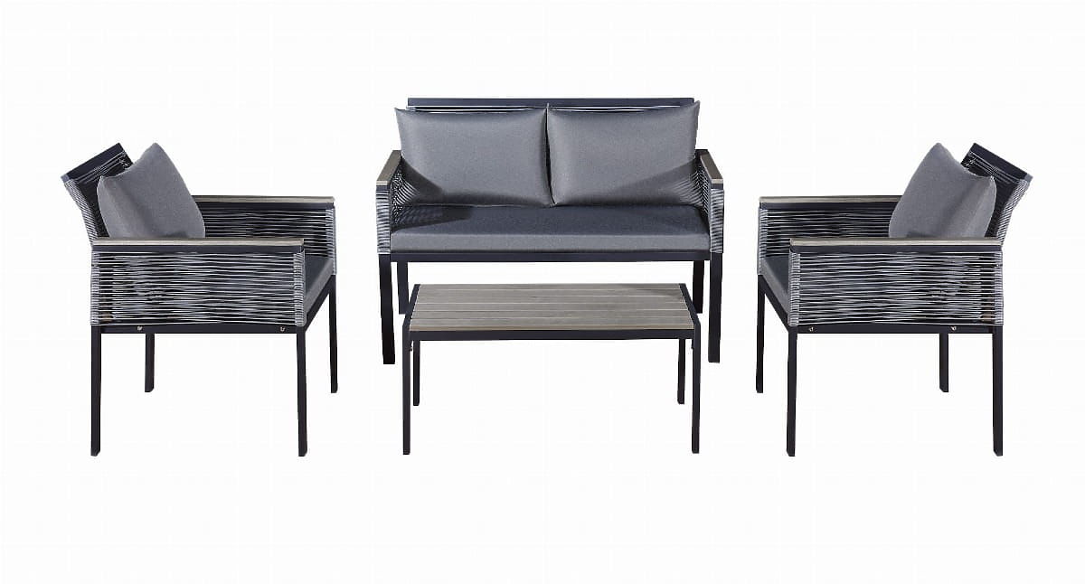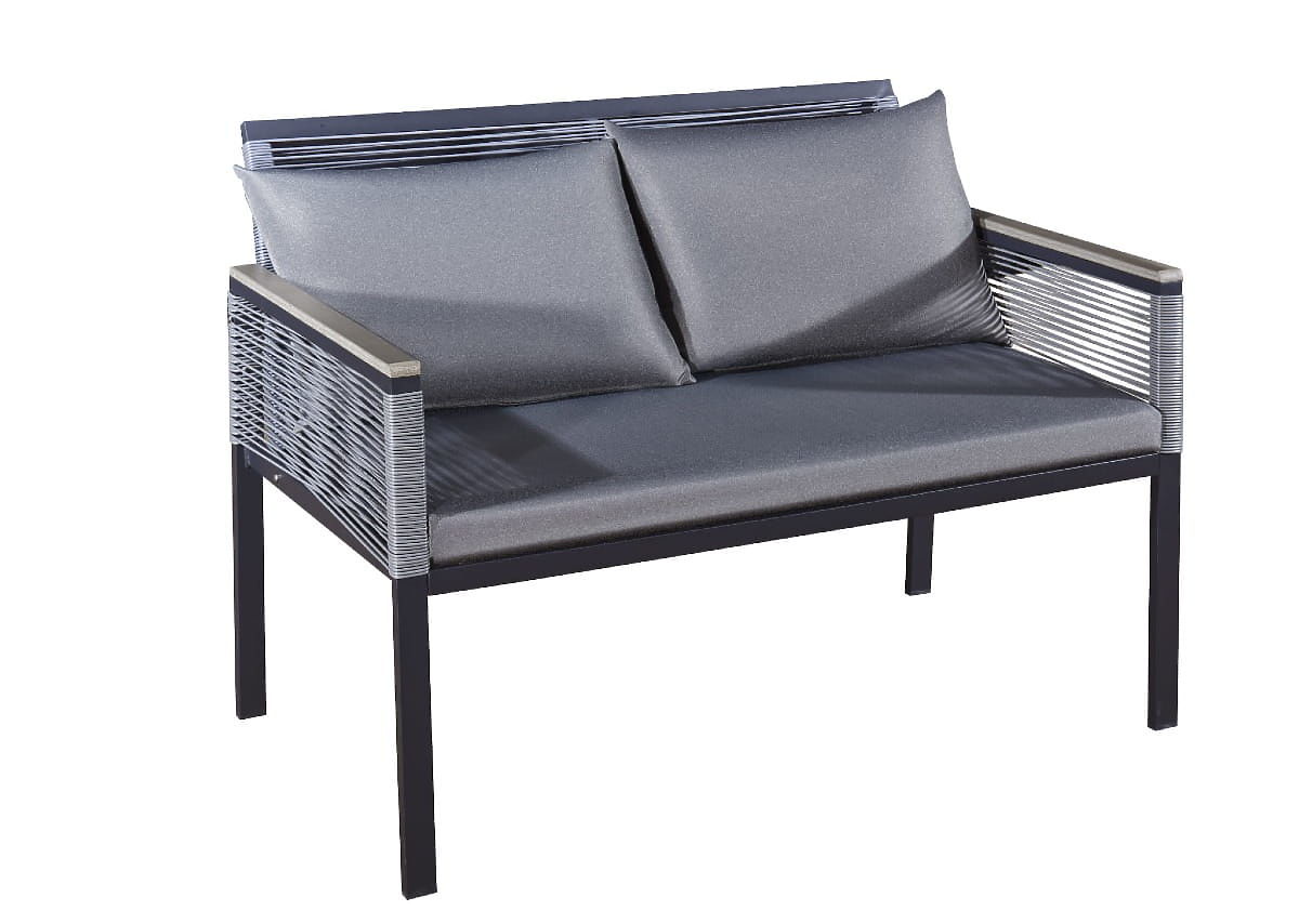 49471-0 Aluminium-Gartenmöbel-Set (2 x Sessel, Sofa + Tisch) CORTO runder grauer Technorattan