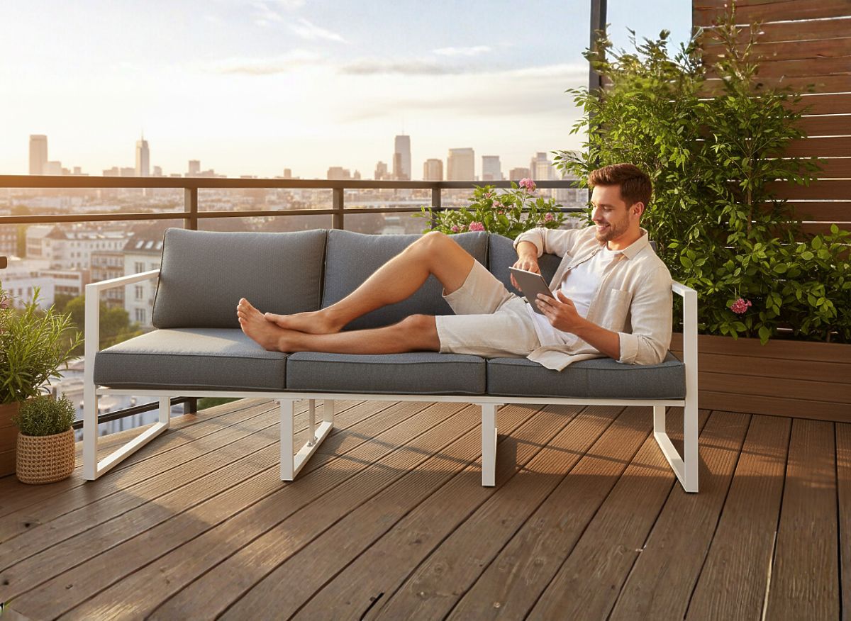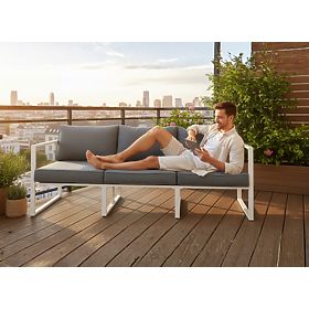 Luka-home.de   »   Gartenmöbel   /   Gartensofas   /   Großes dreisitziges Terrassensofa 204 cm MOSTRARE weißes Aluminium