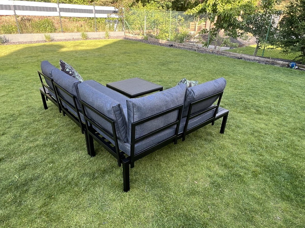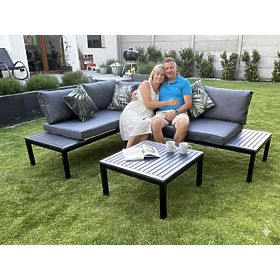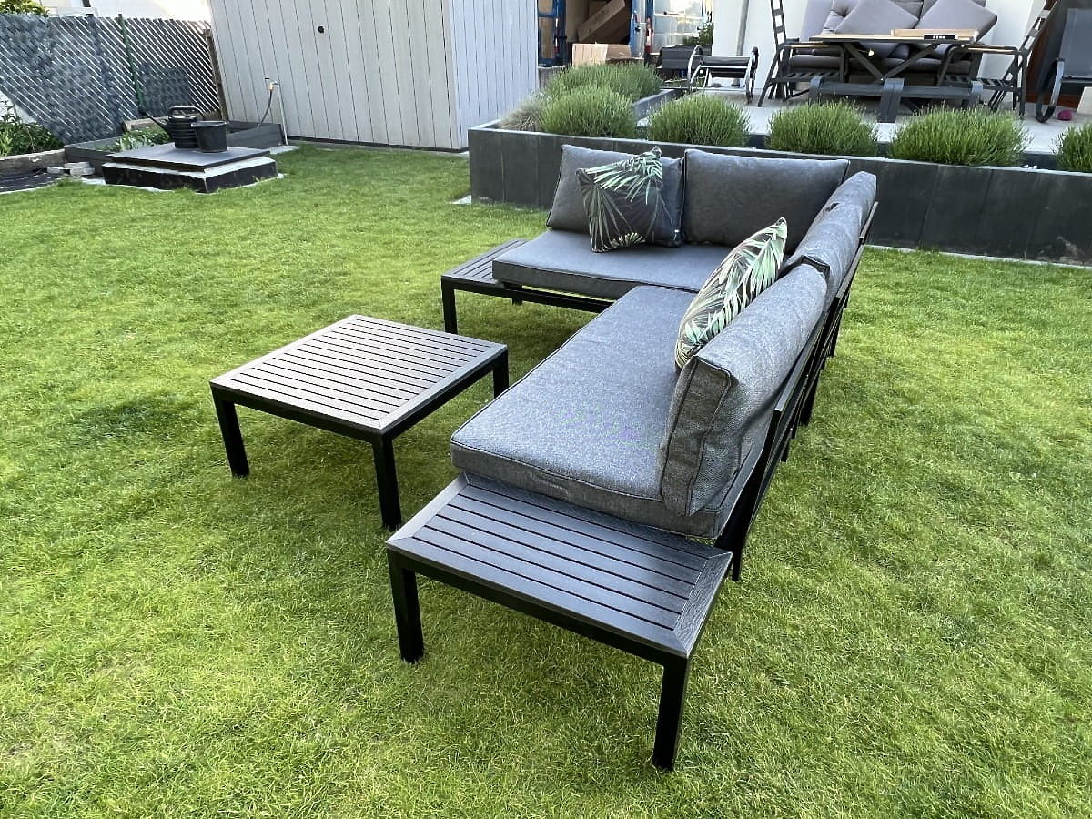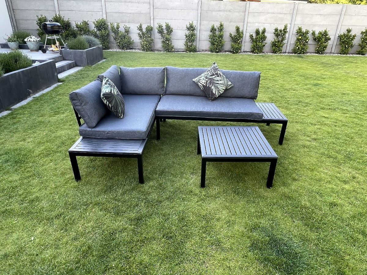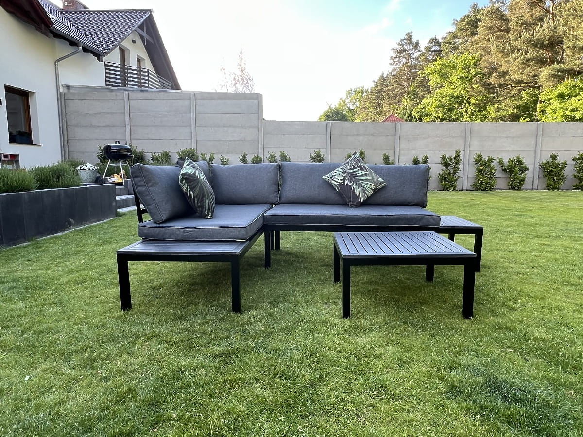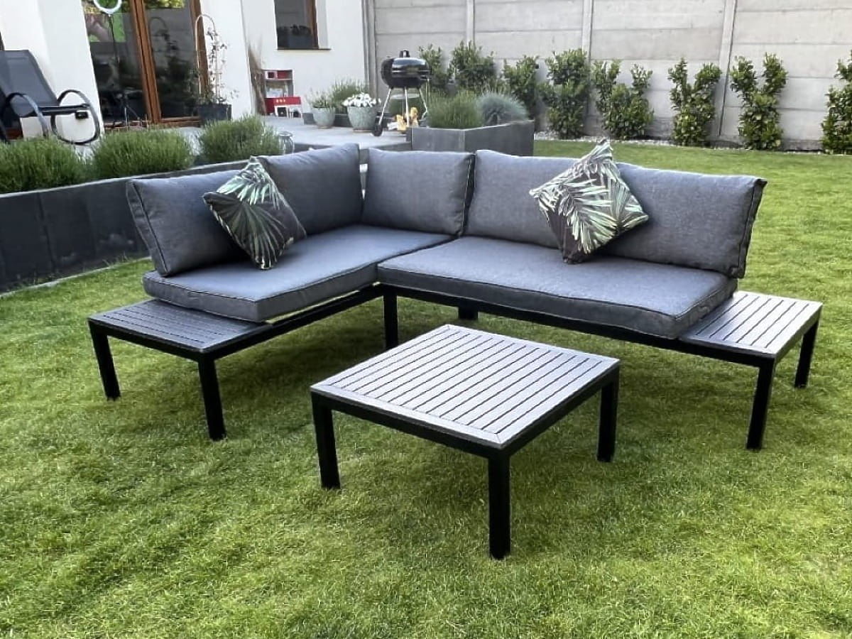 Entdecken Sie Komfort und Stil mit diesem Garten-Eckset! Seine robuste Stahlkonstruktion garantiert jahrelange Nutzung und die schwarzen, hölzernen Akzente verleihen nicht nur Charme, sondern schützen auch vor den Launen des Wetters. Entworfen mit Blick auf Ihre Entspannung, ist es mit flauschigen Kissen aus hochwertigem Schaumstoff ausgestattet, die unvergleichlichen Komfort bieten. Dieses Möbelset ist eine Investition in einen schönen und funktionalen Garten, der Ihnen viele Saisons dienen wird. Farbe des VENTO-Sets: schwarz Kissenfarbe: grau Möbelkonstruktion: Stahl Das Eckset ist modular, was eine Anordnung in beliebiger Konfiguration (links/rechts) ermöglicht. Das Set besteht aus 3 Elementen: 2 x Seitenmodul (rechts und links): Breite: 160 cm Tiefe: 67 cm Höhe: 69 cm 1 x Tisch: Länge: 67 cm Breite: 67 cm Höhe: 34 cm Kissen in grauer Farbe für Sitzflächen und Rückenlehnen sind im Set enthalten (2 Stück für Sitzflächen, 5 Stück für Rückenlehnen). Dicke der Sitzkissen: 8 cm. Stellen Sie sich Gartenmöbel vor, die Ihre Erwartungen in jeder Hinsicht übertreffen – von der Haltbarkeit bis zum Design. Hier ist BELLO GIARDINO, wo jedes Detail zählt und Luxus auf Funktionalität trifft: Unvergängliche Qualität: Unser synthetisches Rattan garantiert, dass die Möbel jahrelang halten, ohne an Schönheit oder Widerstandsfähigkeit zu verlieren. Wetterbeständigkeit: Unsere Möbel trotzen den härtesten Wetterbedingungen, von sengender Sonne bis zu eisigen Wintern, und bleiben dabei stets schön. Luxuriöser Komfort: Dicke, weiche Kissen laden zur Entspannung ein und bieten einen Komfort, den man anderswo schwer findet. Leichtigkeit und Stabilität: Die Aluminiumkonstruktion vereint das Beste aus beiden Welten – sie ist leicht, aber äußerst stabil. Design, das verzaubert: Jedes Element unserer Möbel wurde mit Blick auf Ästhetik und Funktionalität entworfen, um in jede Umgebung zu passen. Ob Sie Minimalismus lieben oder reiche, elegante Arrangements schätzen, unsere Möbel erfüllen Ihre Erwartungen und überschreiten die Grenzen gewöhnlicher Funktionalität und Ästhetik. Wir garantieren, dass selbst die anspruchsvollsten Kunden dem Komfort und Stil von BELLO GIARDINO nicht widerstehen können. Machen Sie Ihren Garten, Ihre Terrasse oder Ihren Balkon zu einer Oase der Entspannung und Eleganz, die Sie sich immer gewünscht haben. Warten Sie nicht, entdecken Sie BELLO GIARDINO noch heute und verwandeln Sie Ihre Außenbereiche in Orte, von denen Sie immer geträumt haben.