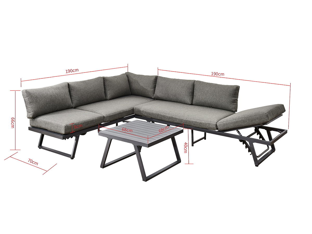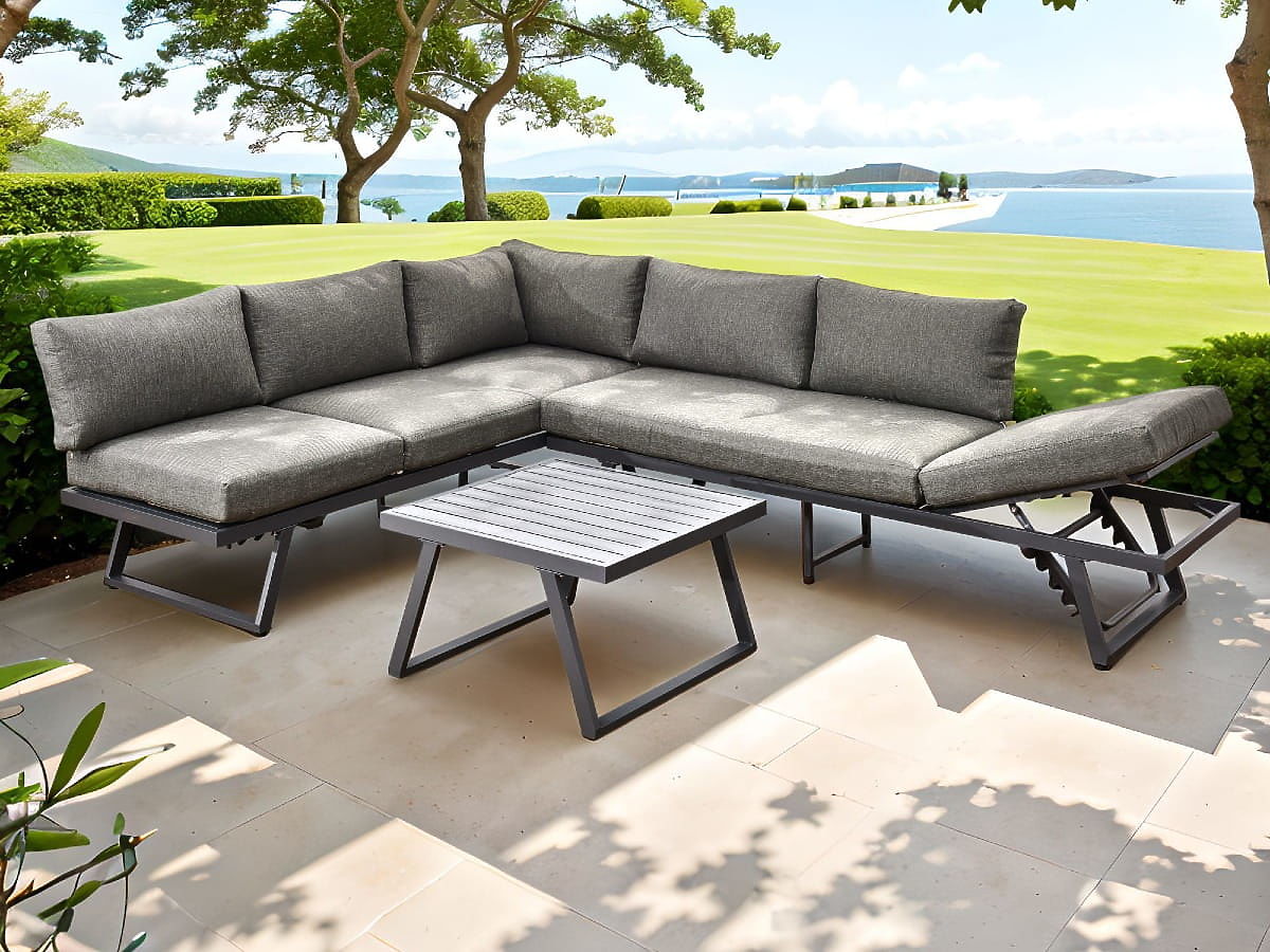 Garten-Ecksofa aus Aluminium mit Tisch RADIOSO mit verstellbarer Rückenlehne