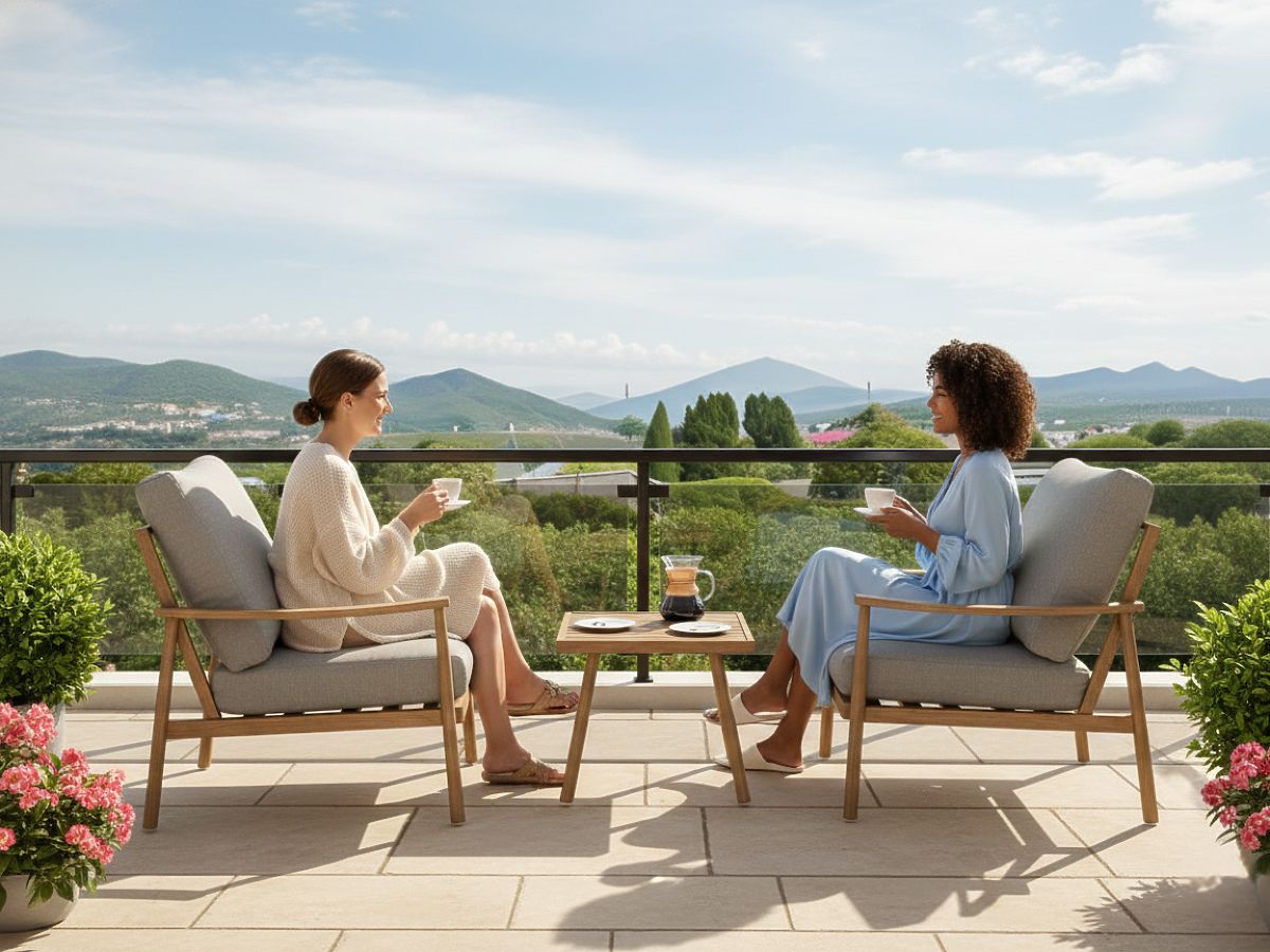 Balkonmöbel aus Aluminium (2 Sessel + Tisch) SERANO