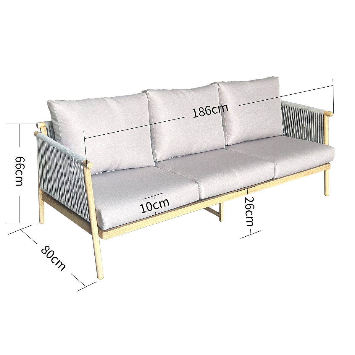 Aluminium Garten-Sofa BLANDO - großes 3-Sitzer, 186 cm