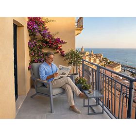 LIEFERUNG GEPLANT FÜR ANFANG APRIL 2026 Schaffen Sie in Ihrem Garten, auf der Terrasse oder dem Balkon eine einzigartige Entspannungszone mit dem Gartenstuhl MISTERIOSO. Dieses außergewöhnliche Möbelstück ist eine meisterhafte Verbindung von roher Eleganz des Aluminiums mit kompromisslosem Nutzungskomfort. MISTERIOSO verspricht ruhige Erholung an der frischen Luft. Der Stuhl wurde so entworfen, dass er wechselnden Wetterbedingungen standhält und dabei langfristig sein makelloses Aussehen bewahrt. Was dieses Modell jedoch am meisten auszeichnet, ist das innovative Kissensystem. Die Verwendung einer fortschrittlichen Schichtstruktur im Sitz und einer flauschigen Füllung in der Rückenlehne sorgt dafür, dass sich der Stuhl perfekt dem Körper anpasst, den Benutzer umhüllt und nach einem anstrengenden Tag tiefe Entspannung ermöglicht. Technische Spezifikation: Modellname: MISTERIOSO Möbeltyp: Relaxstuhl Konstruktionsmaterial: Hochwertiges Aluminium (leicht, korrosionsbeständig) Gesamtabmessungen: Breite: 70 cm Tiefe: 95 cm Höhe: 76 cm Sitzabmessungen: 65 cm x 60 cm Kissen: Sitz: Dickes Kissen mit fortschrittlicher "Sandwich"-Struktur, das Elastizität und Verformungsfreiheit gewährleistet. Zusammensetzung: Oberschicht: 4 cm Polypropylenfaser (Weichheit). Kern: 5 cm Schaumstoff mit einer Dichte von 20D (Stabilität). Unterschicht: 4 cm Polypropylenfaser. Rückenlehne: Füllung aus flauschiger PP-Baumwolle für maximalen Rückenkomfort. Mit der Wahl des Stuhls MISTERIOSO investieren Sie in Premiumqualität, die die Haltbarkeit von Metall mit der Gemütlichkeit eines heimischen Wohnzimmers verbindet. Es ist die ideale Wahl für diejenigen, die keine Kompromisse eingehen und Möbel suchen, die sowohl durch Design als auch Funktionalität begeistern. Verwandeln Sie Ihre Terrasse und genießen Sie jeden Tag Momente des Luxus.