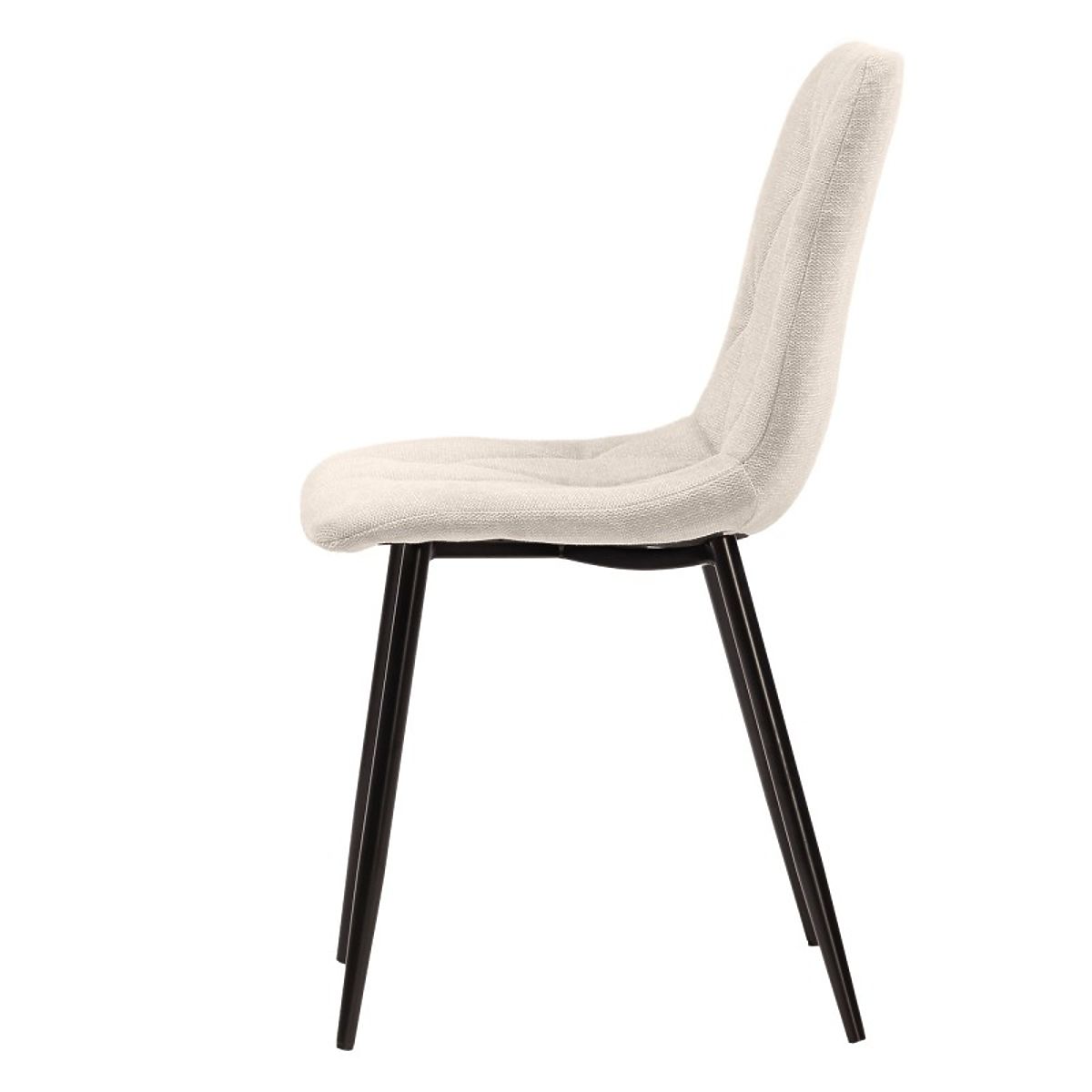 Hesta ist ein eleganter Stuhl ohne Armlehnen, der ein großartiges Element für das Interieur des Wohnzimmers, Esszimmers oder Büros sein wird. Der beige Sitz des Möbels ruht auf schwarzen Metallbeinen.