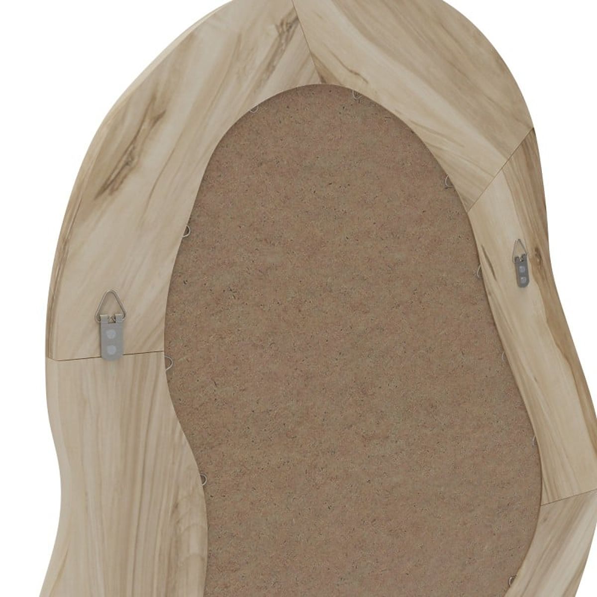 Hängespiegel Lia mit natürlichem Holzrahmen und unregelmäßiger Form. .. mehr