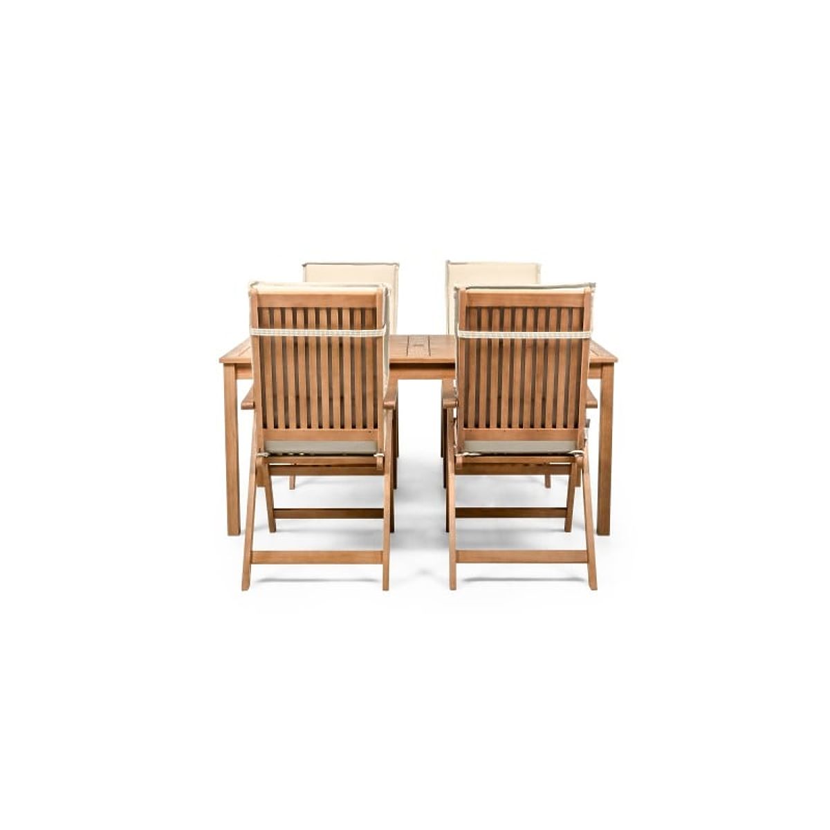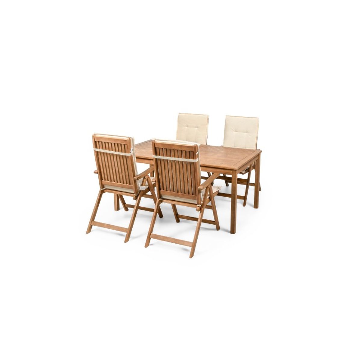 Luka-home.de » Gartenmöbel / Gartensets / Garten-Set Familis Tisch 160 cm + 4 Stühle mit verstellbaren Rückenlehnen und cremefarbenen Kissen,