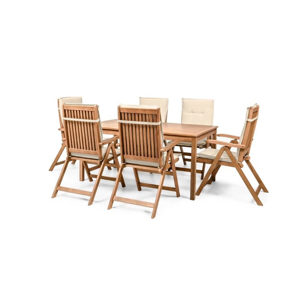 Luka-home.de » Gartenmöbel / Gartensets / Gartenset Familis Tisch 160 cm + 6 Stühle mit verstellbaren Rückenlehnen und cremefarbenen Kissen, H