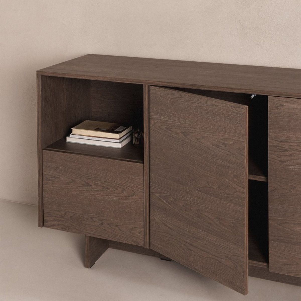 Die Kommode Kanso verkörpert eine klare Form und zeitlosen Minimalismus. Die feine Ausführung und glatte Frontflächen ohne Griffe machen sie nicht nur zu einem funktionalen Stauraum, sondern auch zu einem Designelement im Interieur. Eleganz, Einfachheit und bewusste Wahl in einem.
