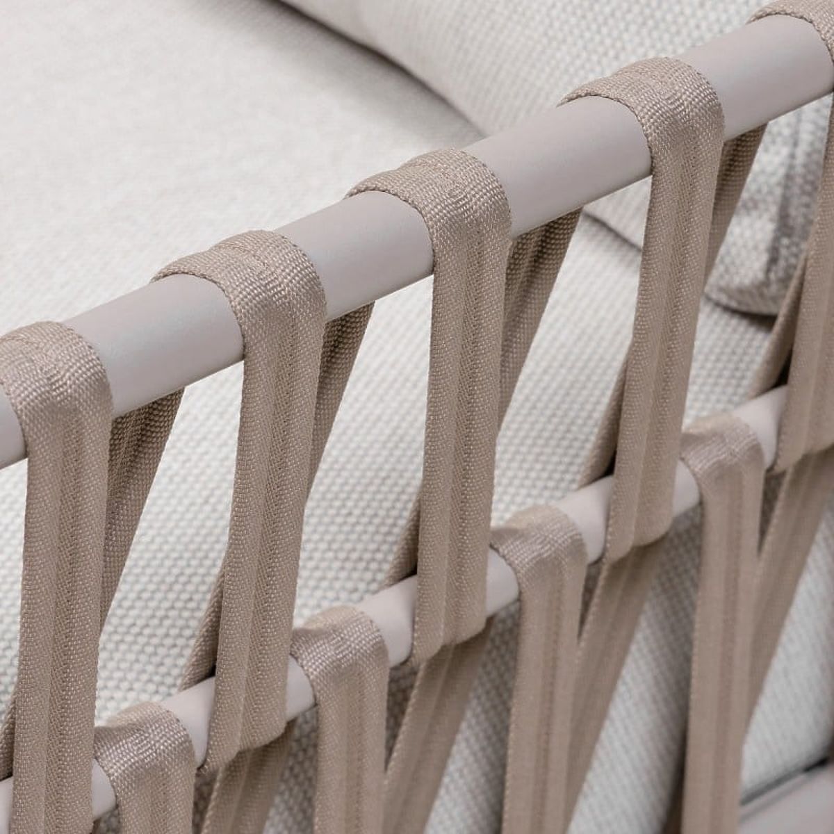 Ecksofa Amarello mit Aluminiumrahmen und beigegrauem Geflecht. .. mehr