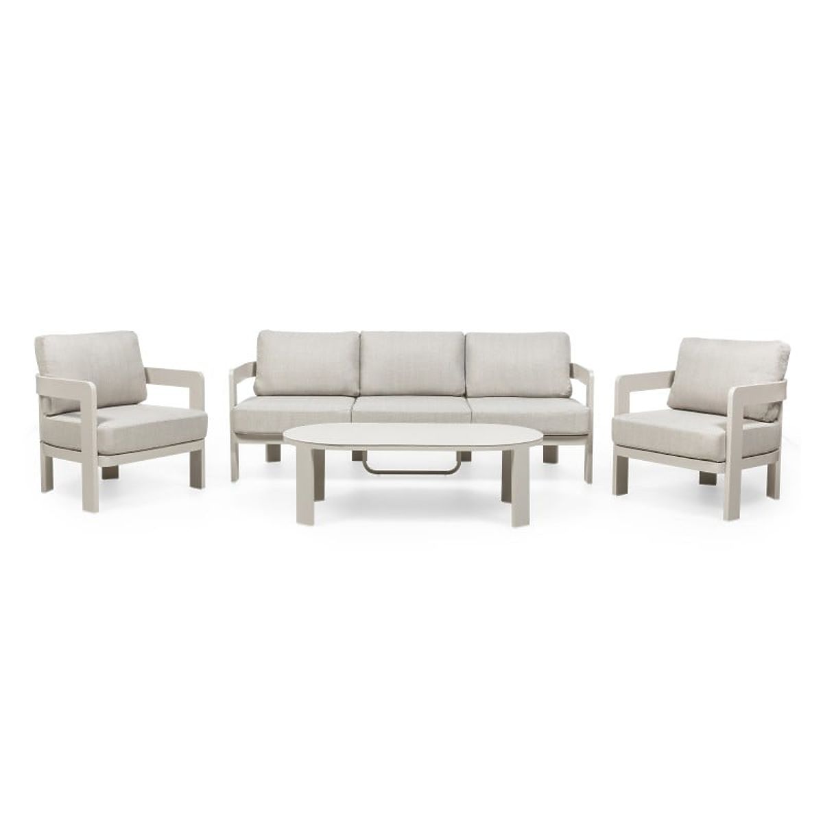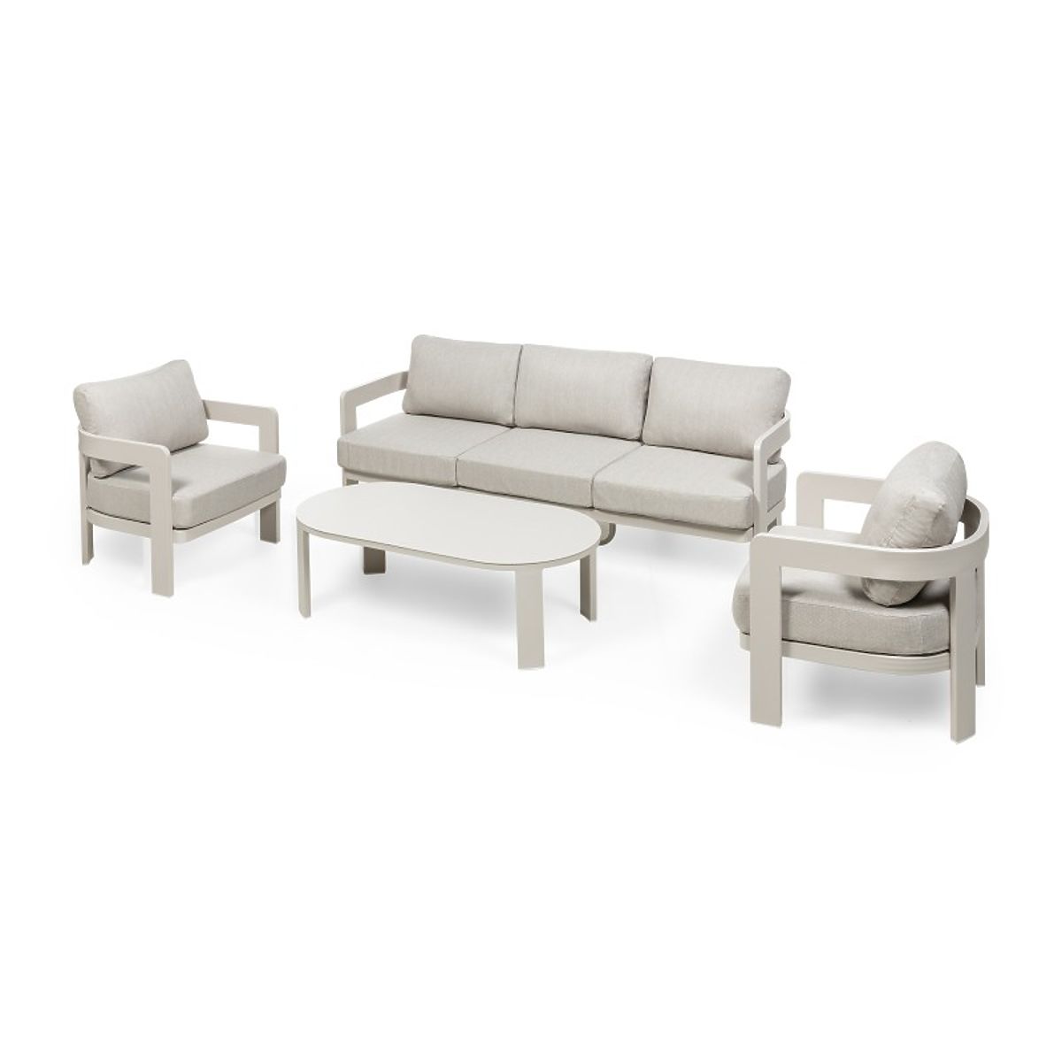 Gartenmöbel-Set Japori mit abgerundeten Formen und hellbeigen Kissen. .. mehr