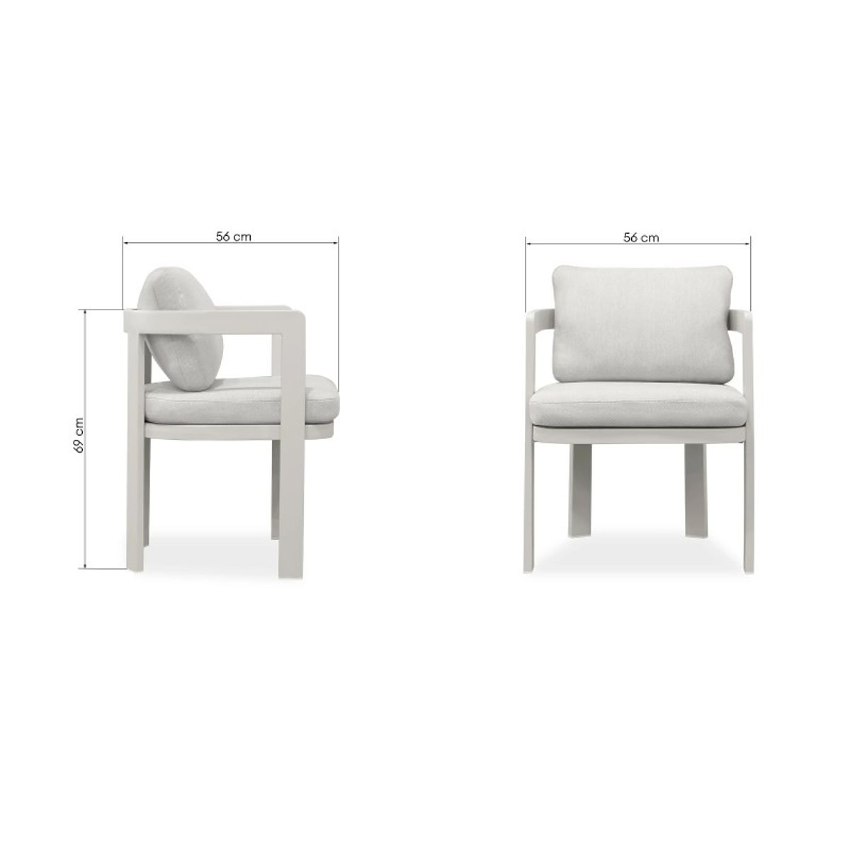 Der Japori Stuhl verbindet Ruhe und Eleganz in jedem Detail. Die hellbeige, leichte Konstruktion und die abgerundeten Formen verleihen ihm einen gemütlichen Charakter, während die weichen Kissen zu einem stilvollen, komfortablen Entspannen einladen.
