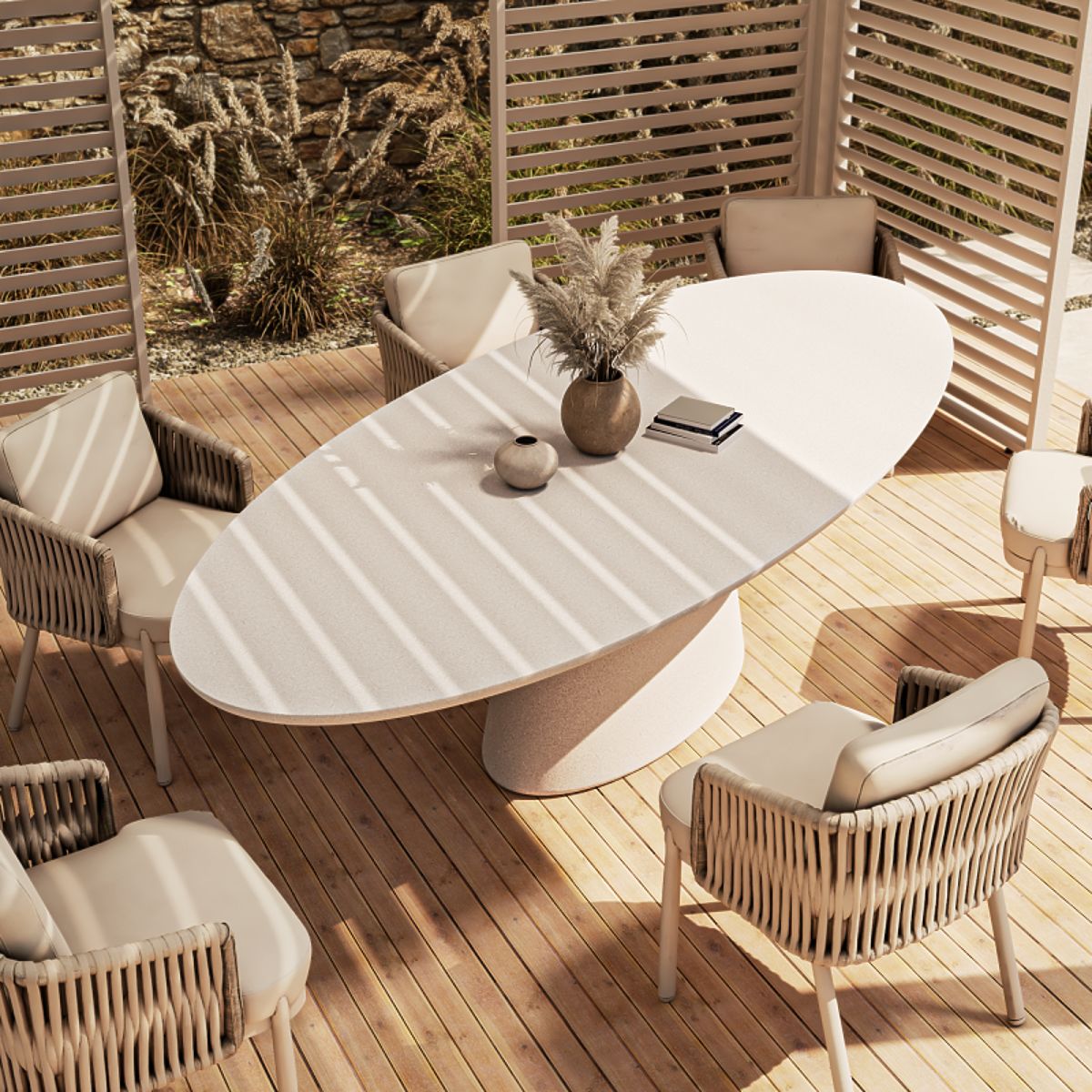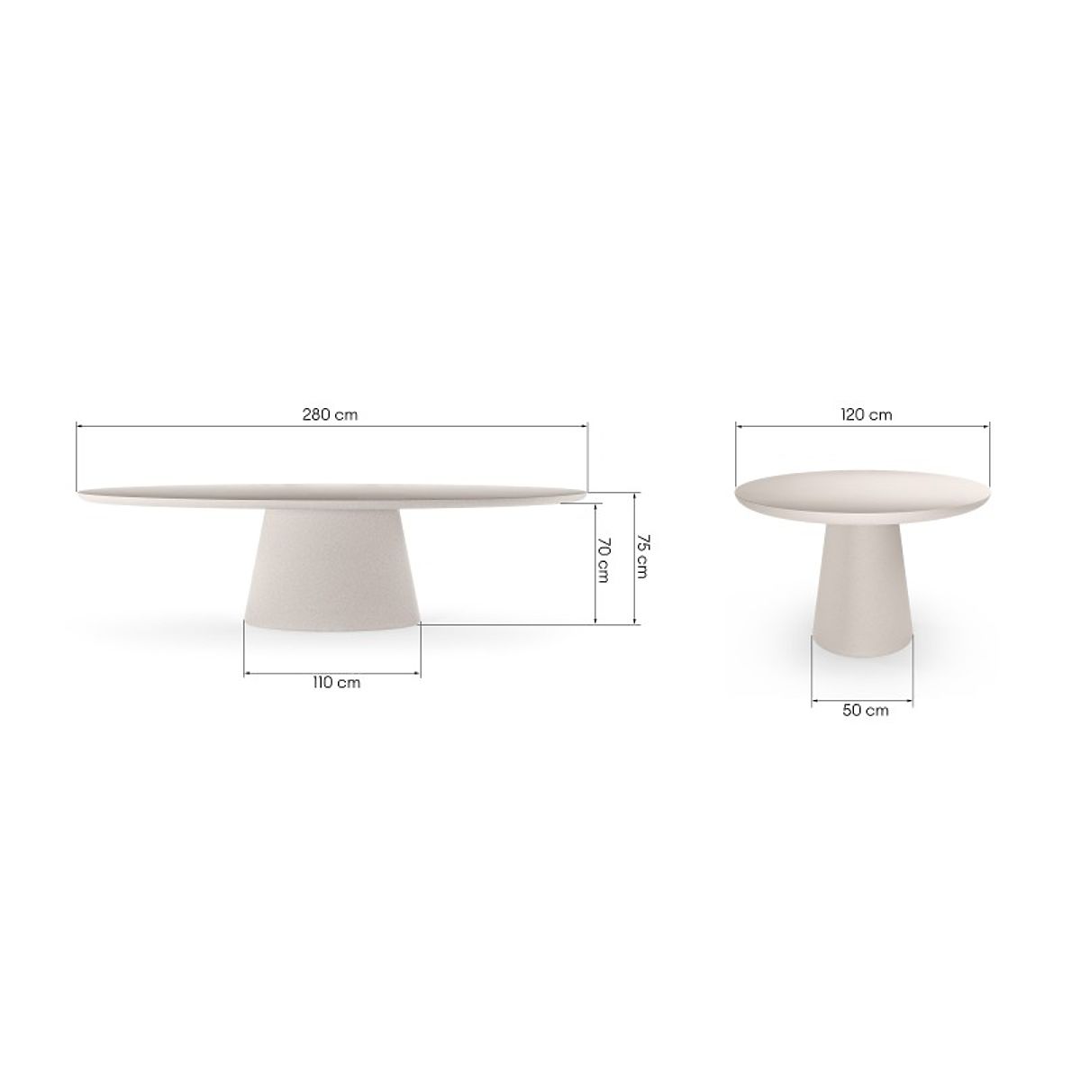 Ovaler Gartentisch aus hellbeigem MgO-Material, 280x120 cm. .. mehr