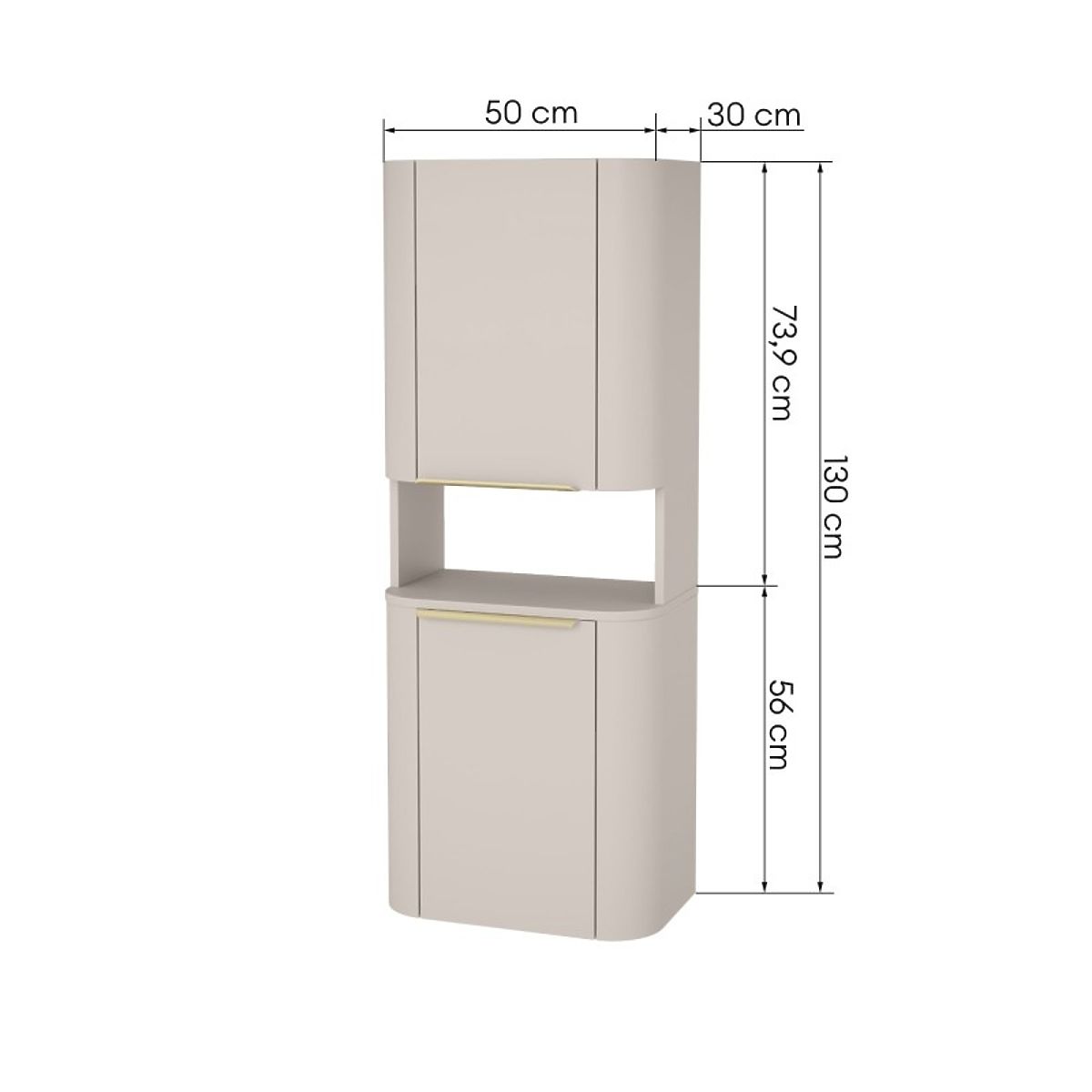 Luka-home.de » Badezimmer und Toilette / Badezimmerschränke / Badezimmerschrank, Bassa-Säule in Kaschmir, goldene Griffe, abgerundet