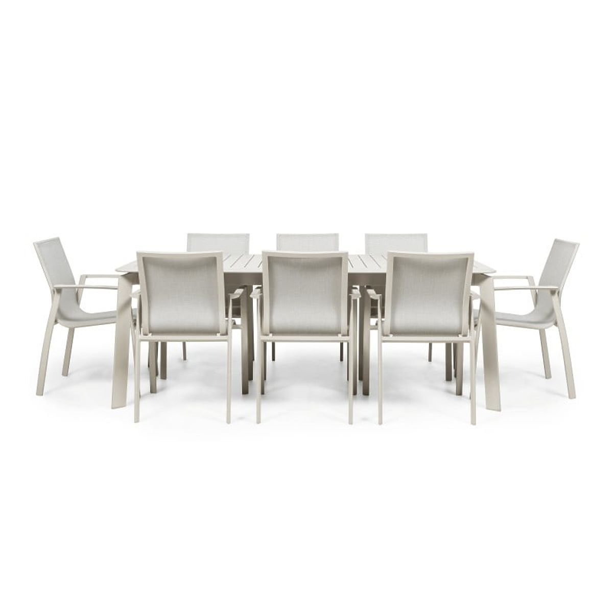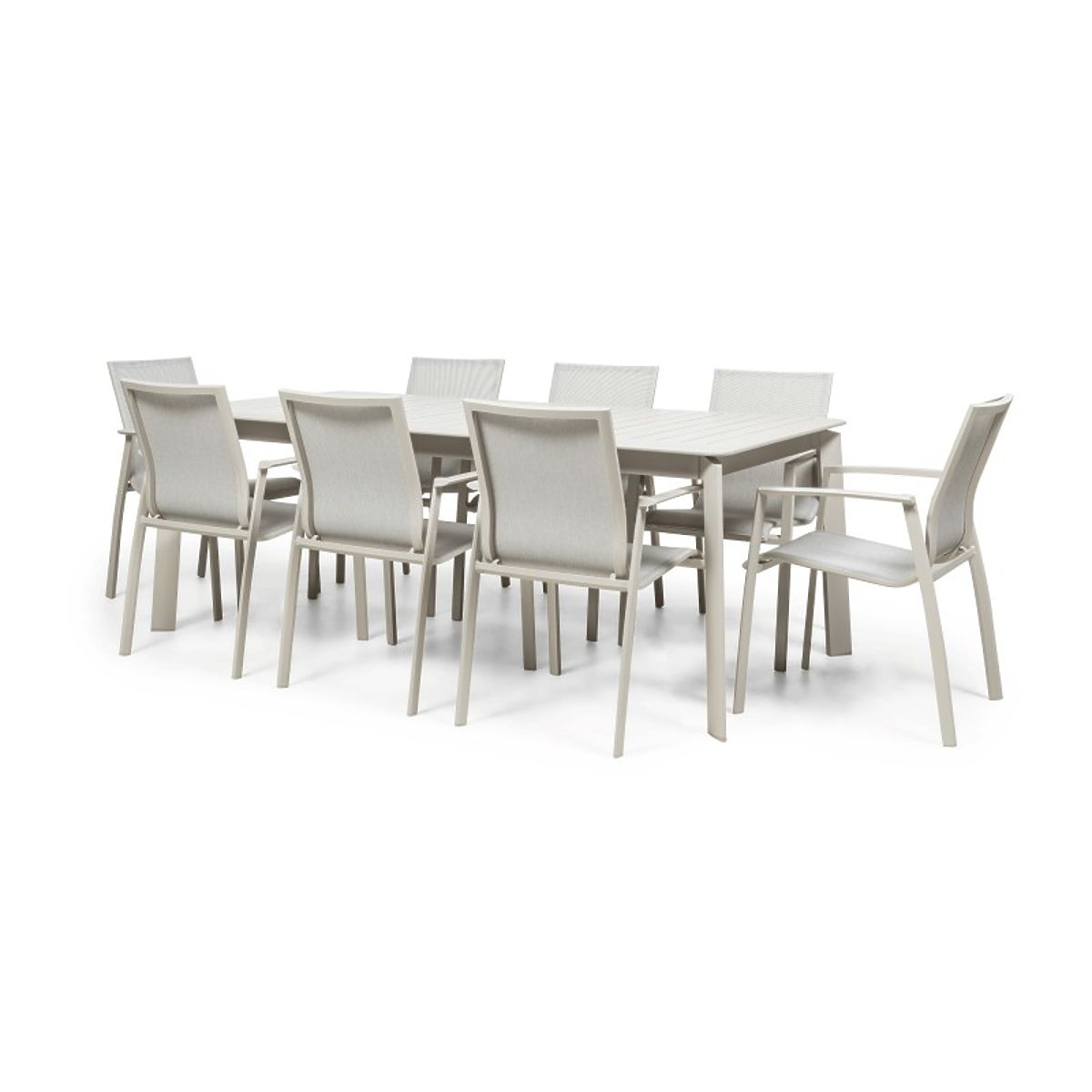 Luka-home.de » Gartenmöbel / Gartensets / Garten-Set Canelli, ausziehbarer Tisch 205-286 cm + 8 Stühle, Aluminium, hellbeige