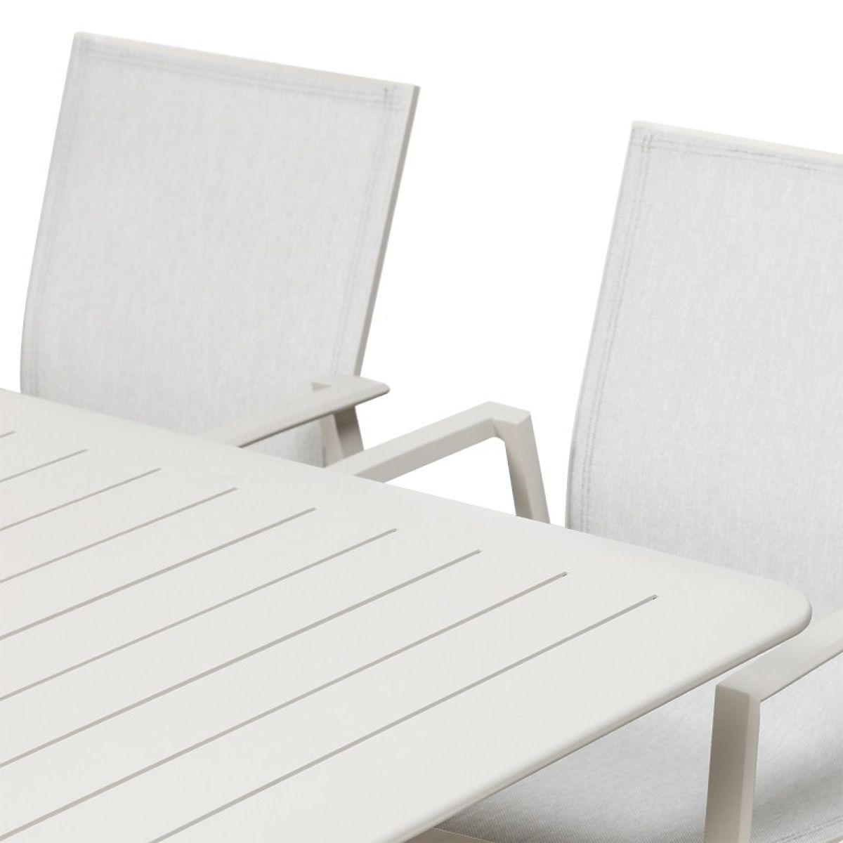 Canelli ist ein Garten-Set, das mit Blick auf moderne Räume und komfortable Erholung entworfen wurde. Die Aluminiumkonstruktion in einem sanften Beigeton verbindet Eleganz mit Widerstandsfähigkeit und bewährt sich hervorragend bei wechselnden Wetterbedingungen. Dank der Ausziehfunktion des Tisches schaffen Sie leicht Platz für größere Treffen und gemeinsame Momente im Freien.